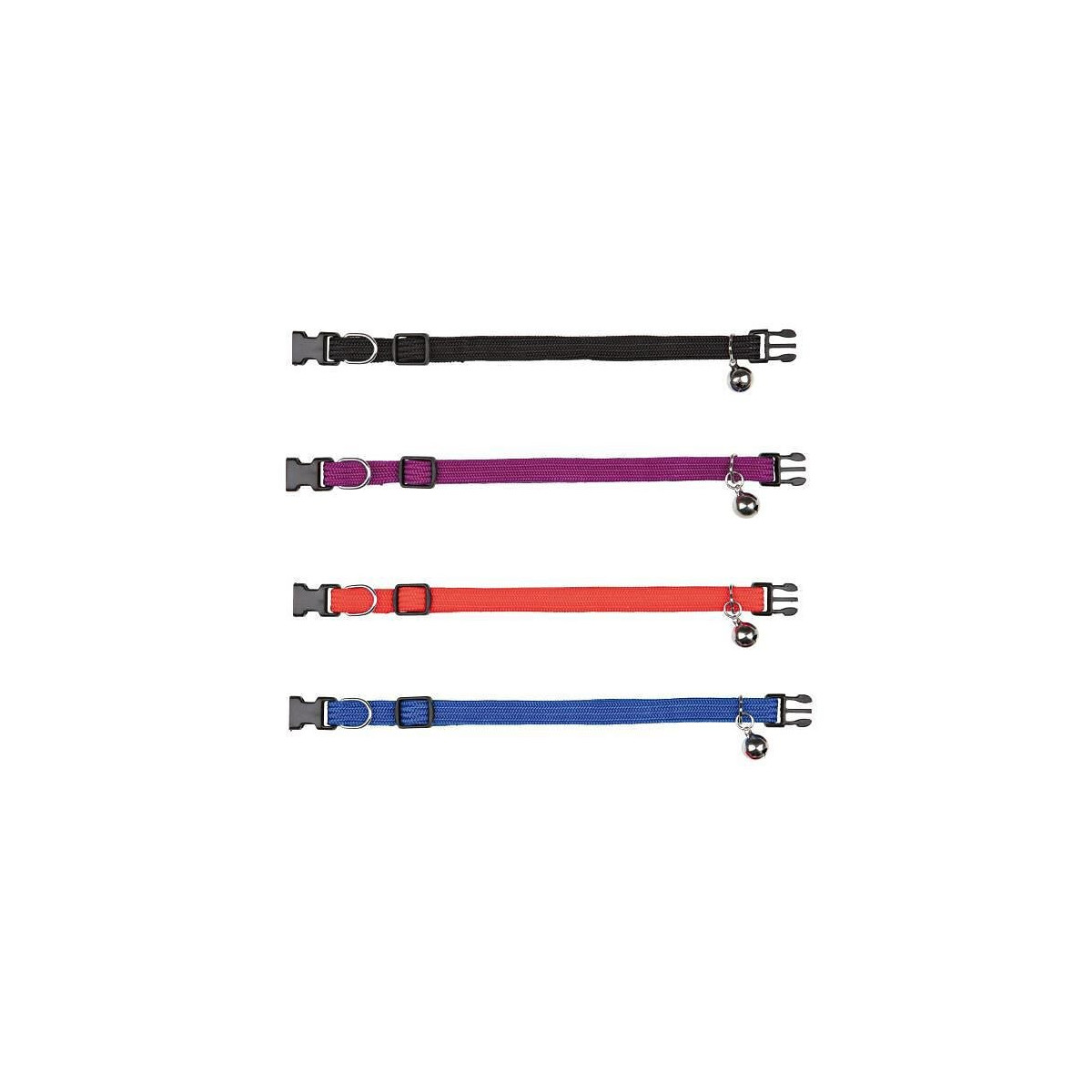 Collier élastique - En nylon - Entierement réglable - Avec clochette - Divers coloris - Pour chat.
