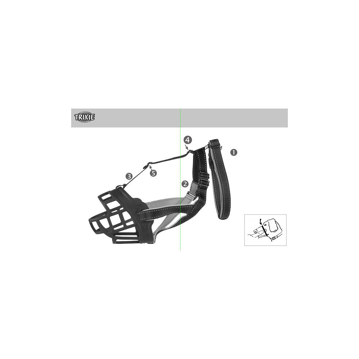 Muselière Muzzle Flex, en silicone. Très confortable à porter grâce à sa forme ergonomique, la silicone souple indéformable et attaches en néoprène matelassé au niveau du visage et du cou. Aucun problème pour haleter, boire et manger des friandises. Couleur : noir. Taille: M-L. Muselière: jusqu'à 22 cm. Circonférence intérieure: 27 cm. Par ex.: Beagle, Dalmatien. Conforme à la protection des animaux selon § 18 (AT). Muselière Muzzle Flex, en silicone. En silicone/nylon/néoprène. Forme ergonomique souple et forme stable. Très confortable à porter grâce à sa forme ergonomique, la silicone souple indéformable et attaches en néoprène matelassé au niveau du visage et du cou. Aucun problème pour haleter, boire et manger des friandises. Maintien sûr grâce aux attaches triples. Couleur : noir. Conforme à la protection des animaux selon § 18 (AT). Taille: M-L. Muselière: jusqu'à 22 cm. Par ex.: Beagle, Dalmatien. Circonférence intérieure: 27 cm. Photo non contractuelle, car il y a plusieurs vendeurs sur une même fiche produit.
