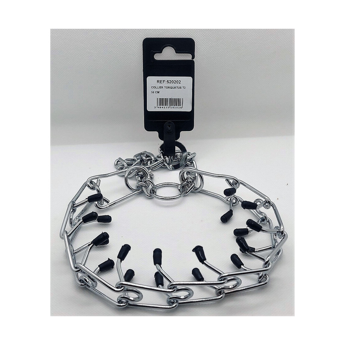 Collier pour chien TORQUATUS. taille 2. 58 cm au total donc, convient pour un tour de cou allant de 40 à 46 cm. Le collier Torquatus s'avère être un précieux allié pour éduquer les chiens puissants qui ont tendance à trop tirer sur la laisse lors des promenades. Pratique et solide, ce collier en métal argenté est également élégant. Il s'adapte aux tours de cou allant de 40 cm à 46 cm. Collier pour chien TORQUATUS. taille 2. 58 cm au total. donc, convient pour un tour de cou allant de 40 à 46 cm. Le collier Torquatus s'avère être un précieux allié pour éduquer les chiens puissants qui ont tendance à trop tirer sur la laisse lors des promenades. Pratique et solide, ce collier en métal argenté est également élégant. Il s'adapte aux tours de cou allant de 40 cm à 46 cm. embout en plastique noir pour éviter de blesser l'animal. Photo non contractuelle, car il y a plusieurs vendeurs sur une même fiche produit.