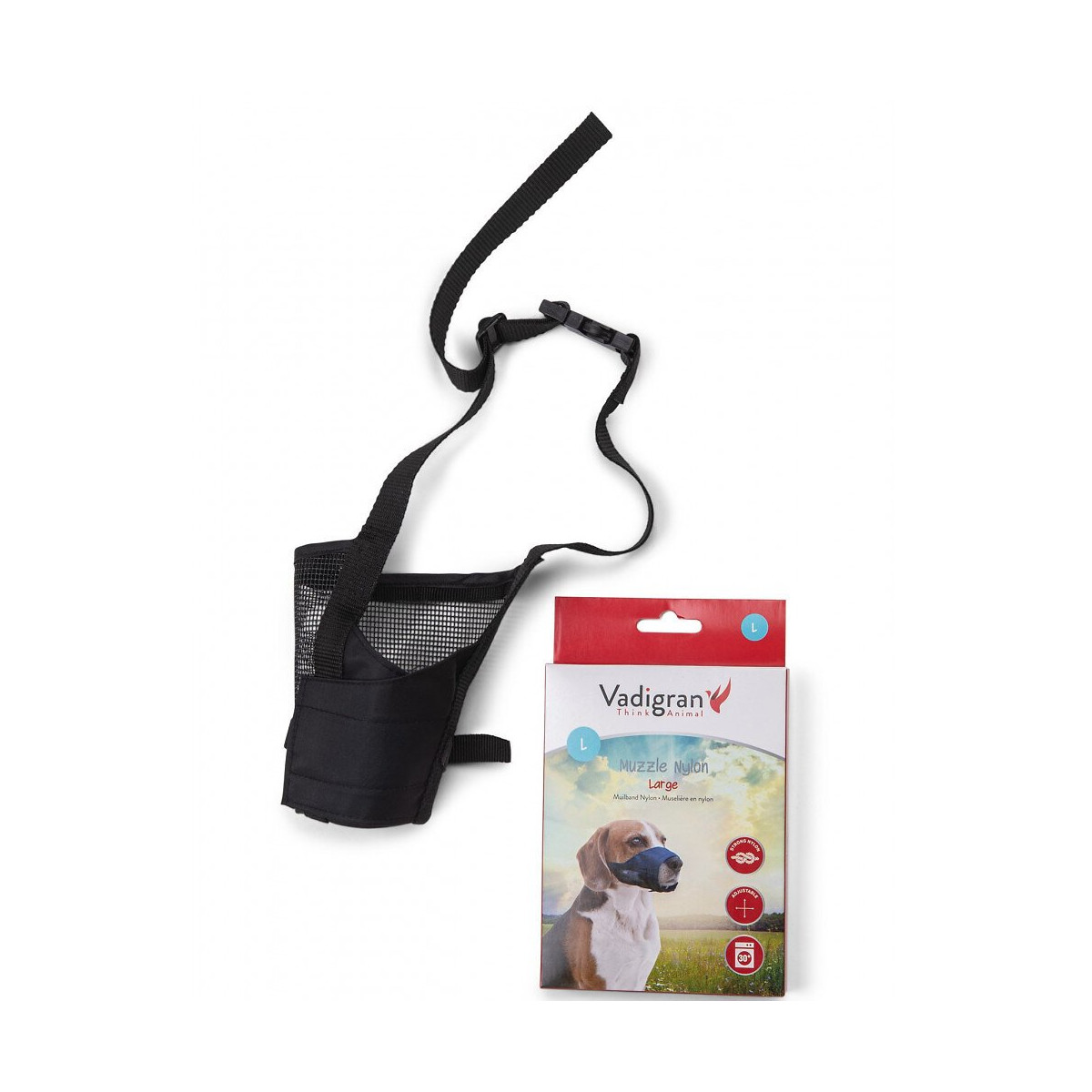 Muselière réglable en nylon. pour chien type bullmastiff, Rottweilers. taille 4 L. tour de cou 26 à 42 cm circonférence du museau 22 - 32 cm. Cette muselière est parfaite pour une utilisation de courte durée, telle qu'une visite chez le vétérinaire ou un voyage. Elle empêchera votre chien de mordre, de mâcher ou d'aboyer. Le réglage à la bonne mesure est très simple et elle permet au chien de boire et de haleter. Ne serrez donc pas trop la muselière ! La muselière convient aussi idéalement pour empêcher le chien de lécher une blessure. CONSEIL ! Apprenez à votre chien à porter une muselière des son plus jeune âge et récompensez-le chaque fois pour cela. Muselière réglable en nylon. pour chien type bullmastiff, Rottweilers. taille 4 L. tour de cou 26 à 42 cm circonférence du museau 22 - 32 cm. Cette muselière est parfaite pour une utilisation de courte durée, telle qu'une visite chez le vétérinaire ou un voyage. Elle empêchera votre chien de mordre, de mâcher ou d'aboyer. Le réglage à la bonne mesure est très simple et elle permet au chien de boire et de haleter. Ne serrez donc pas trop la muselière ! La muselière convient aussi idéalement pour empêcher le chien de lécher une blessure. CONSEIL ! Apprenez à votre chien à porter une muselière des son plus jeune âge et récompensez-le chaque fois pour cela. Photo non contractuelle, car il y a plusieurs vendeurs sur une même fiche produit.