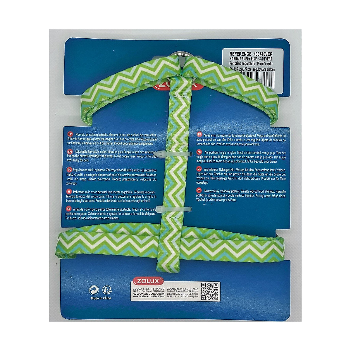 Harnais sanitaire en nylon réglable, issus de la nouvelle gamme de sellerie fantaisie "Pixie" pour chiots. Motif chiot. Largeur de sangle : 13 mm. Tour de cou : 27 à 42 cm. Tour de ventre : 30 à 49cm. Coloris : vert. Harnais en nylon pour chiot ajustable. Veillez à ce que le collier ne soit pas trop serré : vous devez pouvoir passer un doigt entre le cou de votre chiot et le collier. Produit pour animaux uniquement Harnais S PUPPY PIXIE. Harnais sanitaire en nylon réglable, issus de la nouvelle gamme de sellerie fantaisie "Pixie" pour chiots. Motif chiot. Largeur de sangle : 13 mm. Tour de cou : 27 à 42 cm. Tour de ventre : 30 à 49cm. Coloris : vert. Harnais en nylon pour chiot ajustable. Veillez à ce que le collier ne soit pas trop serré : vous devez pouvoir passer un doigt entre le cou de votre chiot et le collier. Produit pour animaux uniquement Photo non contractuelle, car il y a plusieurs vendeurs sur une même fiche produit.