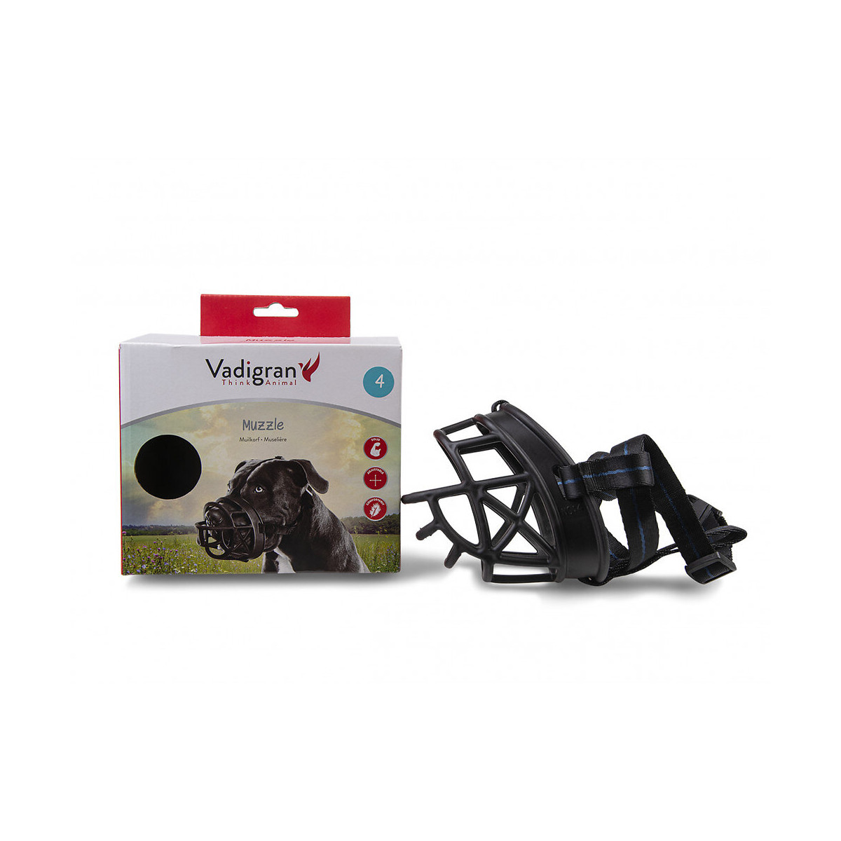 Muselière caoutchouc noir . taille 4. pour type de chien Pit bull. Fabriquée à l'aide d'un caoutchouc solide et durable, la muselière Vadigran constitue une protection et un accessoire idéal pour le dressage. Elle protège votre chien contre la tentation de mordre, de mâcher, contre les aboiements et l'envie de lécher ses plaies. Elle est très facile à mettre et à régler à la bonne taille. La muselière permet de faire boire votre chien, de le laisser haleter ou encore de lui donner des friandises. Ne serrez donc pas trop la muselière ! CONSEIL ! Apprenez à votre chien à supporter la muselière dès son plus jeune âge et récompensez-le chaque fois qu'il la porte. Muselière caoutchouc noir . taille 4. pour type de chien Pit bull. Fabriquée à l'aide d'un caoutchouc solide et durable, la muselière Vadigran constitue une protection et un accessoire idéal pour le dressage. Elle protège votre chien contre la tentation de mordre, de mâcher, contre les aboiements et l'envie de lécher ses plaies. Elle est très facile à mettre et à régler à la bonne taille. La muselière permet de faire boire votre chien, de le laisser haleter ou encore de lui donner des friandises. Ne serrez donc pas trop la muselière ! CONSEIL ! Apprenez à votre chien à supporter la muselière dès son plus jeune âge et récompensez-le chaque fois qu'il la porte. La muselière a une large ouverture ajustable et est équipée d'une lanière supplémentaire pour la tête, de sorte que les chiens avec un large museau bénéficient aussi d'un port confortable. Avec cette muselière, votre chien peut haleter et boire. La muselière offre une solution aux comportements agressifs, à l'angoisse et par exemple, au fait de ne pas pouvoir lécher une blessure. Photo non contractuelle, car il y a plusieurs vendeurs sur une même fiche produit.