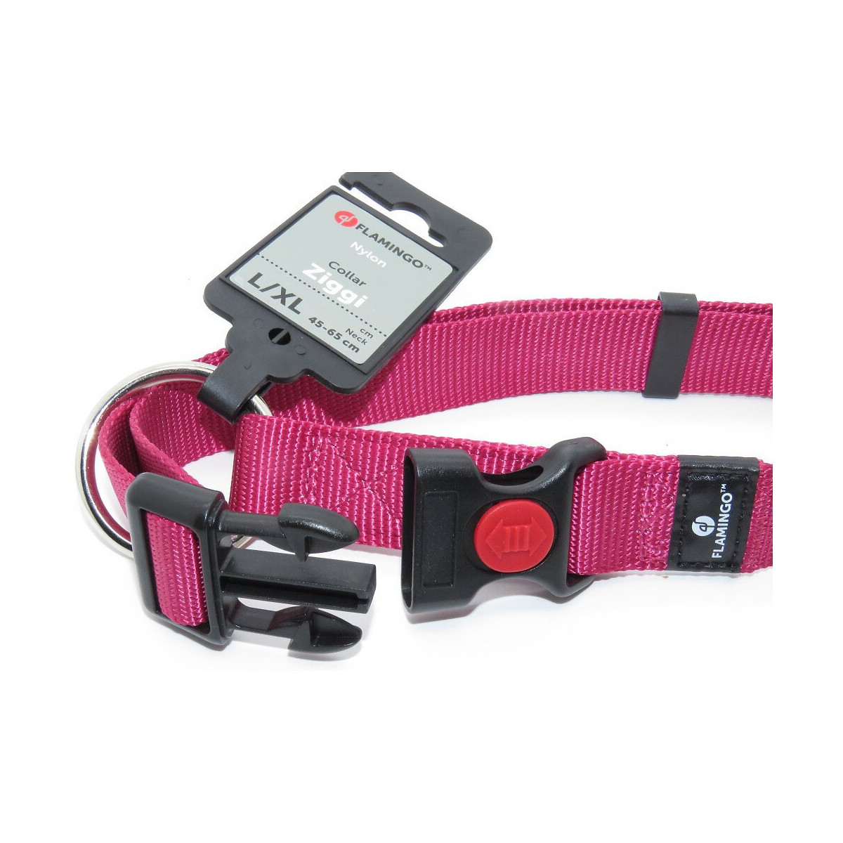 Collier Ziggi rouge cerise pour chien. taille L/XL. dimension réglable de 45 -65 cm. largeur 25 MM . en nylon. avec système de blocage du clips de l'attache. bouton rouge . Collier Ziggi rouge cerise pour chien. taille L/XL. dimension réglable de 45 -65 cm. largeur 25 MM . en nylon. avec système de blocage du clips de l'attache. bouton rouge . Photo non contractuelle, car il y a plusieurs vendeurs sur une même fiche produit.