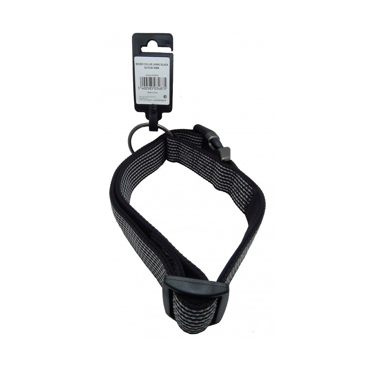 Collier Jannu réglable de 55 à 75 cm largeur 38 mm. pour chien couleur noir. taille XXL système d'attache en plastique et en métal. ne peut pas blesser l'animal car il n'y a que le tissu qui touche le cou du chien. anneau en métal pour attacher la laisse. Collier Jannu réglable de 55 à 75 cm largeur 38 mm. pour chien couleur noir. taille XXL système d'attache en plastique et en métal. ne peut pas blesser l'animal car il n'y a que le tissu qui touche le cou du chien. anneau en métal pour attacher la laisse. Photo non contractuelle, car il y a plusieurs vendeurs sur une même fiche produit.