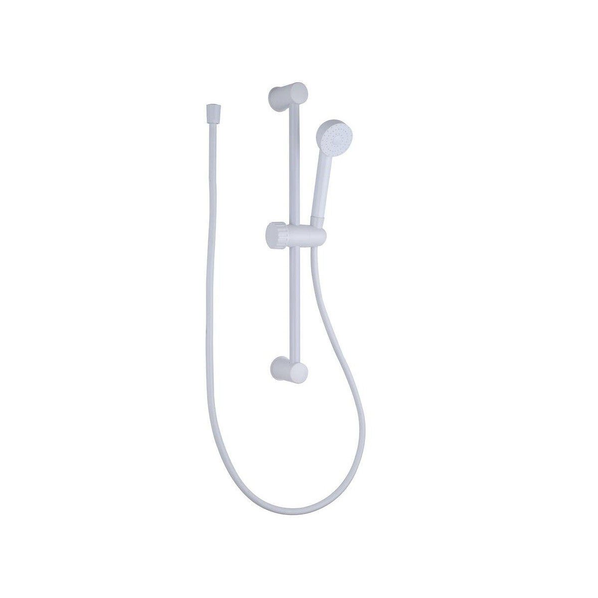 Set barre + flexible + douchette coloris : blanc. Douchette 1 jet, ABS + Flexible ?13mm × 150 cm + Barre de douche