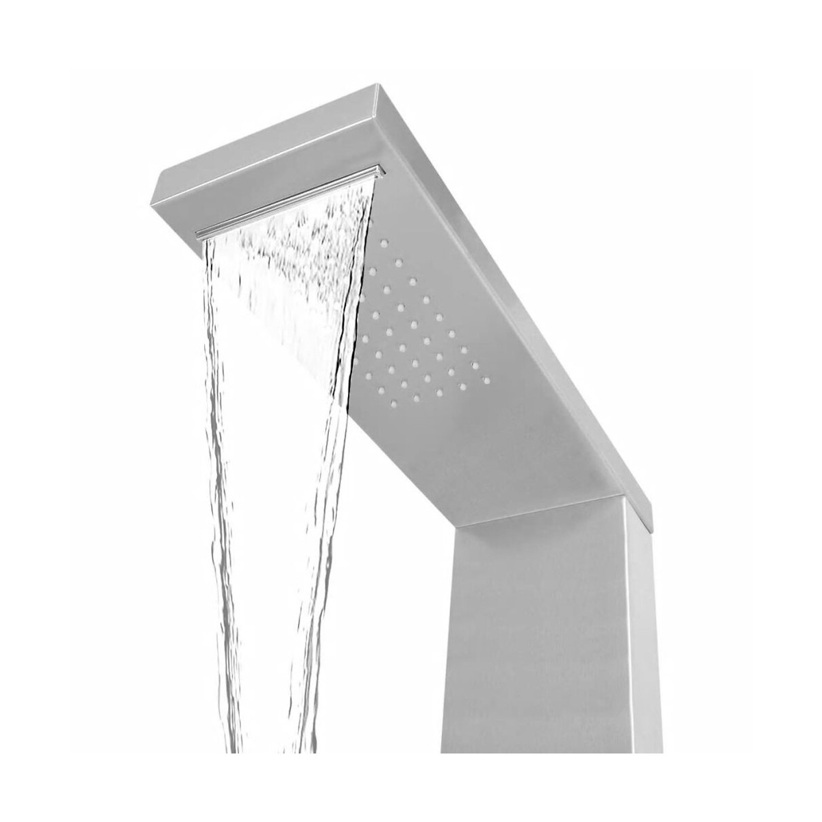 Ce système de panneaux de douche multifonctionnel a un design élégant et fera un excellent accessoire à votre salle de bain. La tour de douche est faite d'acier inoxydable durable avec finition brossée et a un beau design carré. Elle a quatre fonctions : pluie, cascade, jets de massage et pomme de douche à main, qui peuvent être facilement sélectionnées au moyen d'un bouton. Plongez dans une expérience de douche vraiment relaxante et appréciez le style moderne de ce système de panneaux de douche magnifiquement conçu ! Couleur : Argenté Matériau du panneau : acier inoxydable 201 avec une finition brossée La pomme de douche à main et les boutons sont chromés Dimensions : 15 x 47 x 130 cm (I x P x H) Largeur de la cascade : 12,5 cm Dimensions de douche de pluie : 23 x 14 cm (L x l) Dimensions des jets de massage (chaque ensemble) : 20,5 x 10,8 cm (L x l) Dimensions de la douche à main : 2,8 x 2,8 x 21 cm (l x P x H) Longueur du tuyau en acier inoxydable : 150 cm Fonctions : Pluie, cascade, 2 ensembles de jets de massage corporel, pomme de douche à main 150 jets avec buse en silicone : 50 sur la pomme de douche et 50 sur chaque jeu de jets de massage Les buses en silicone résistent à l'accumulation de calcaire Raccord de plomberie standard 1/2" Facile à installer