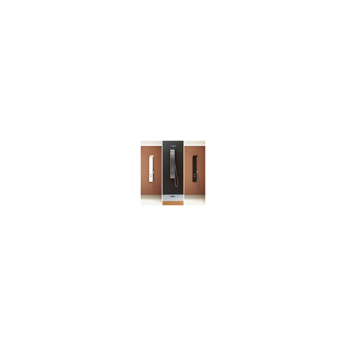 Caractéristiques techniques Installation murale Mitigeur thermostatique encastré Flexibles d alimentation Douchette à main en laiton avec flexible anti-torsion Douche de pluie avec picots silicone anticalcaires Longueur colonne douche : 153 cm Largeur colonne : 20 cm Longueur ciel de pluie : 50 cm Garantie : 2 ans Coloris Inox brossé - ref CD311 Inox laqué blanc mat - ref CD312 Inox laqué noir mat - ref CD313