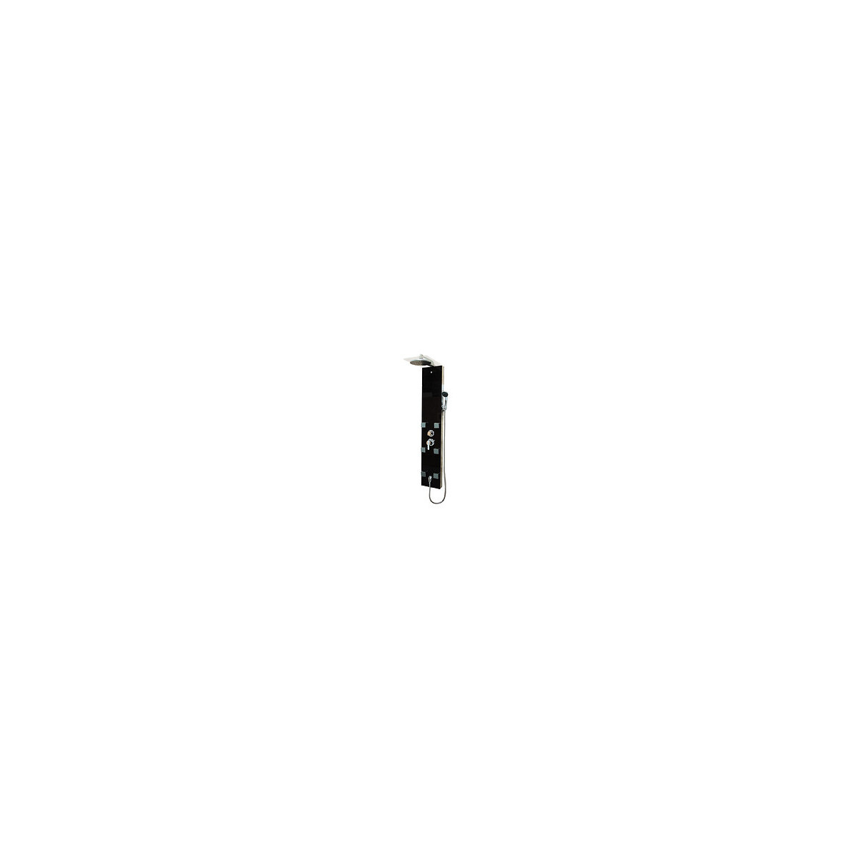 Transformez votre salle de bain en véritable espace de bien-être en installant la colonne de douche hydromassante ADRIA. Le corps de la colonne est en verre trempé noir de 5 mm d'épaisseur, ses dimensions : H140 x L8 x P45cm. Elle est équipée d'une douche de tête ronde de diamètre 20,5cm, d'une douchette monofonction, d'un flexible chromé double agrafage, longueur 150 cm, d'un inverseur de fonctions pommeau/douchette/jets (3 fonctions). Côté hydro, 6 buses hydromassantes latérales orientables avec picots sont positionnées sur la colonne. Le support transparent de la douche de tête s'éclaire et diffuse une lumière apaisante bleue grâce à son éclairage LED (fonctionne à pile 9 V non fournie, à placer dans le boîtier au dos de la colonne). Fournis : 2 supports muraux sont livrés avec la colonne pour permettre son installation. Ce produit de la collection Zen à Vivre vous assure un confort sans égal et vous permet profiter de votre intérieur en toute serenité.