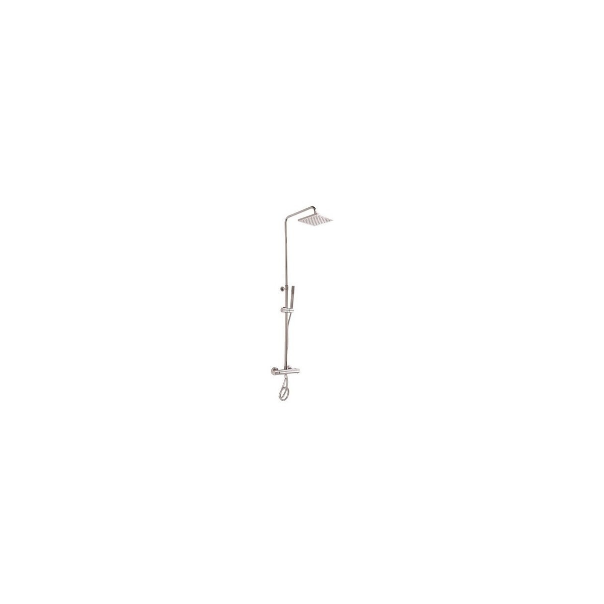 Colonne thermostatique 2 fonctions, réglable en hauteur (Télescopique Mitigeur thermostatique 2 sorties NF - entraxe 150 mm Colonne Ø 20/23 mm - Réglage en hauteur télescopique (Plage 50 cm) Support mural de fixation colonne Douche de tête carrée plate 20 x 20 cm - Système anticalcaire Douchette à main 1 jet avec système anticalcaire Flexible écrous coniques 1,50 m double agrafage PLANETEBAIN.COM VOUS PRÉCONISE: Avant de procéder au montage, nous vous conseillons de purger soigneusement les tuyauteries d'eau chaude et d'eau froide pour éviter que saletés et résidus puissent compromettre la marche de la robinetterie. Nettoyer soigneusement le filetage des tubes d'alimentation d'eau principale. Le mitigeur est utilisable pour des pressions d'alimentation en eau de 1 bar (min) à 5 bars (max). En cas de pression supérieure, nous vous conseillons d'installer un limiteur de pression. Attention : ne pas utiliser de produit abrasif ou tout autre produit acide. Nettoyer votre mitigeur avec de l'eau savonneuse, puis rincer avec une éponge ou un chiffon doux. En cas de calcaire : nettoyer avec de l'eau vinaigrée (vinaigre blanc).