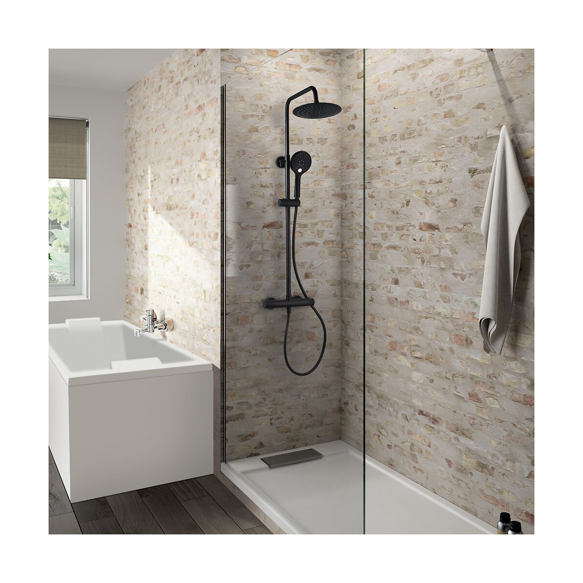 La colonne de douche LOFT GAME offre un look industriel moderne grâce à sa finition noire mate. Caractéristiques de la colonne de douche Loft-Game : Pommeau de tête diamètre 23.8cm en ABS noir 1 jet pluie Douchette 1 jet en ABS laqué noir Anticalcaire Colonne de douche en inox noir ajustable en hauteur entre 82 et 112 cm Robinet thermostatique avec déviateur pour jet à main Flexible en PVC noir 1,50 m Installation en façade uniquement Dimensions : 27,5 x 112 x 51 cmSpécifications techniques