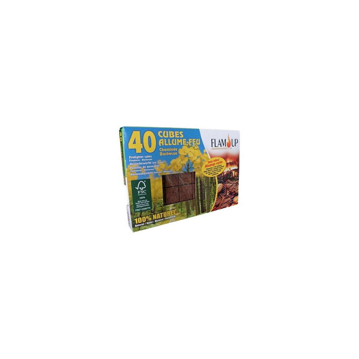 Allume-feu composé de 50% de bois issu de forêts exploitées de façon durable et 50% d'huile de colza de qualité supérieure. Boîte d'une plaque filmée et prédécoupée de 40 cubes. Allumage rapide et sans odeur. Pour cheminée, barbecue. Dimensions : 191 x 132 x 23 mm.Spécifications techniques