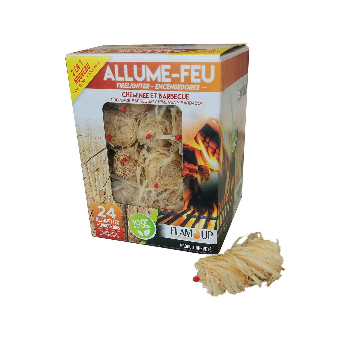 Allume-feu 100% naturel laine de bois + allumettes (boîte de 24)