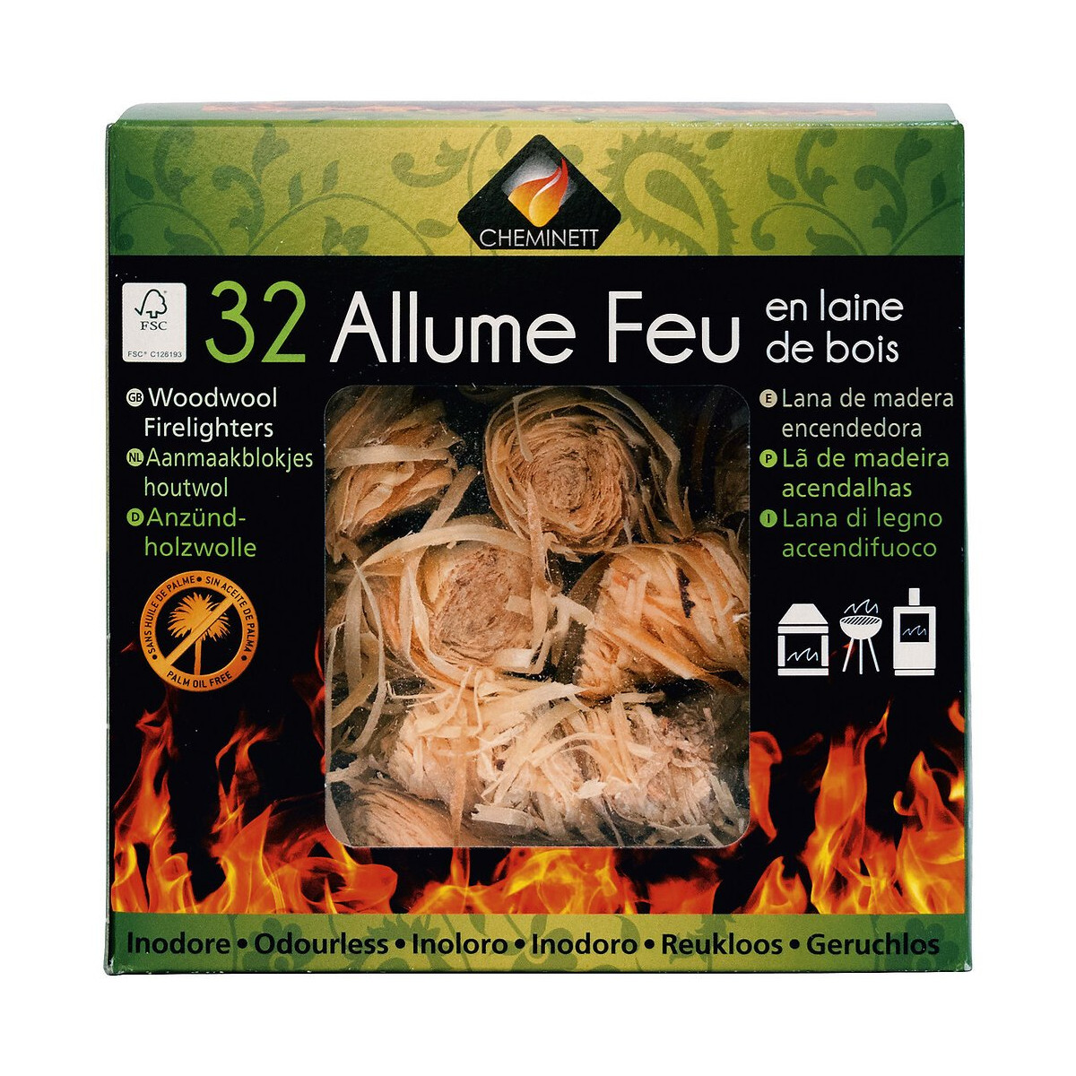 Boîte de 32 allume-feux laine de bois naturel, à base de cire 100% végétale et de bois. Non huileux, non gras au toucher. ,