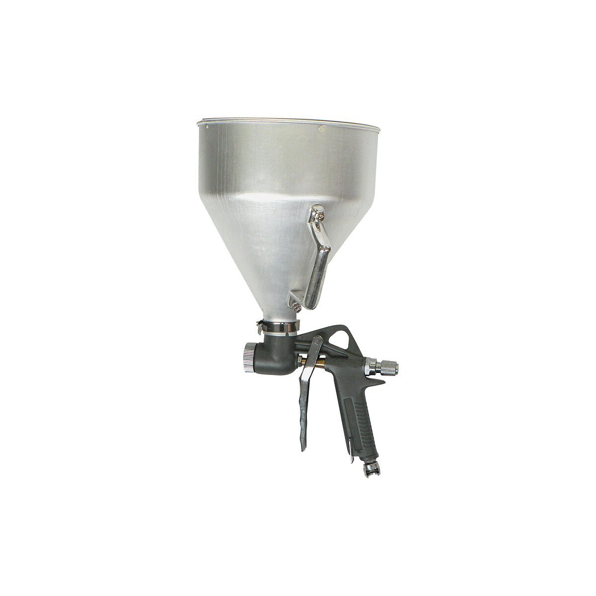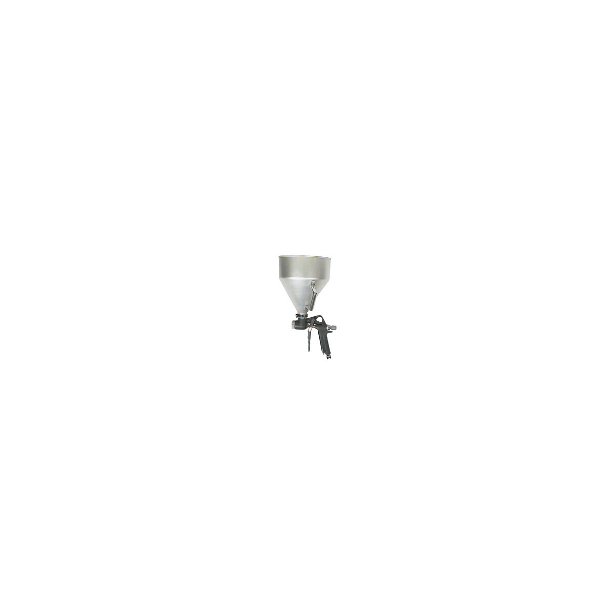 Pistolet à crépir Pour revêtement façades ou murs intérieurs. Cuve aluminium 5 L. Consommation d'air : 250 L/min à 4 bars. Pression d'utilisation : 3 à 5 bars. Entrée : 1/4'' mâle.Spécifications techniques
