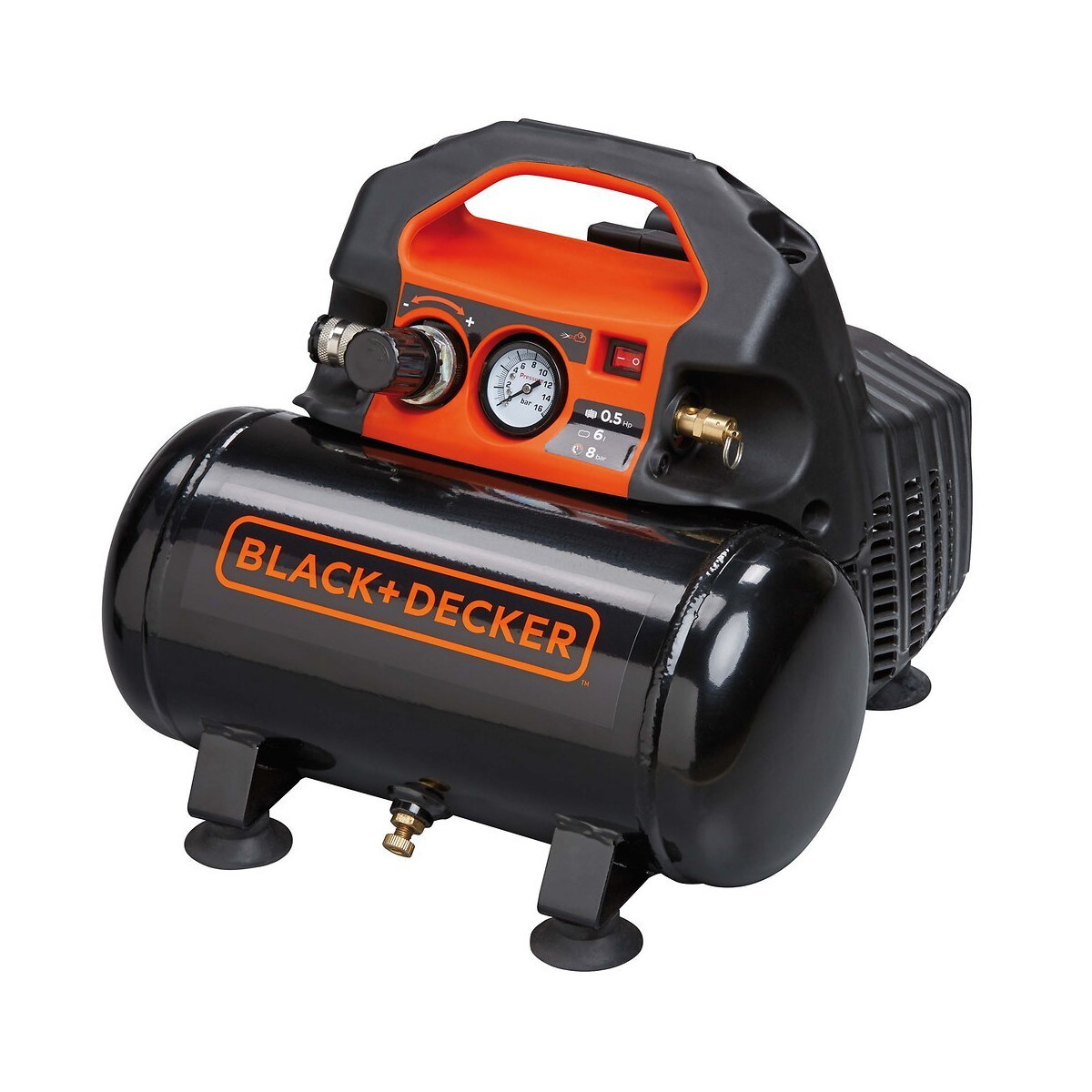 Le compresseur BD195/6NK/2 Marque Black et Decker est équipé d'une cuve de 6 litres. Equipé pour souffler, gonfler, agrafer, aérographe et peindre. Caractéristiques : Puissance : 1,5 CV. Dimensions : Longueur 33 cm Largeur 24 cm Hauteur 37 cm. Poids : 9,5 kg.Spécifications techniques