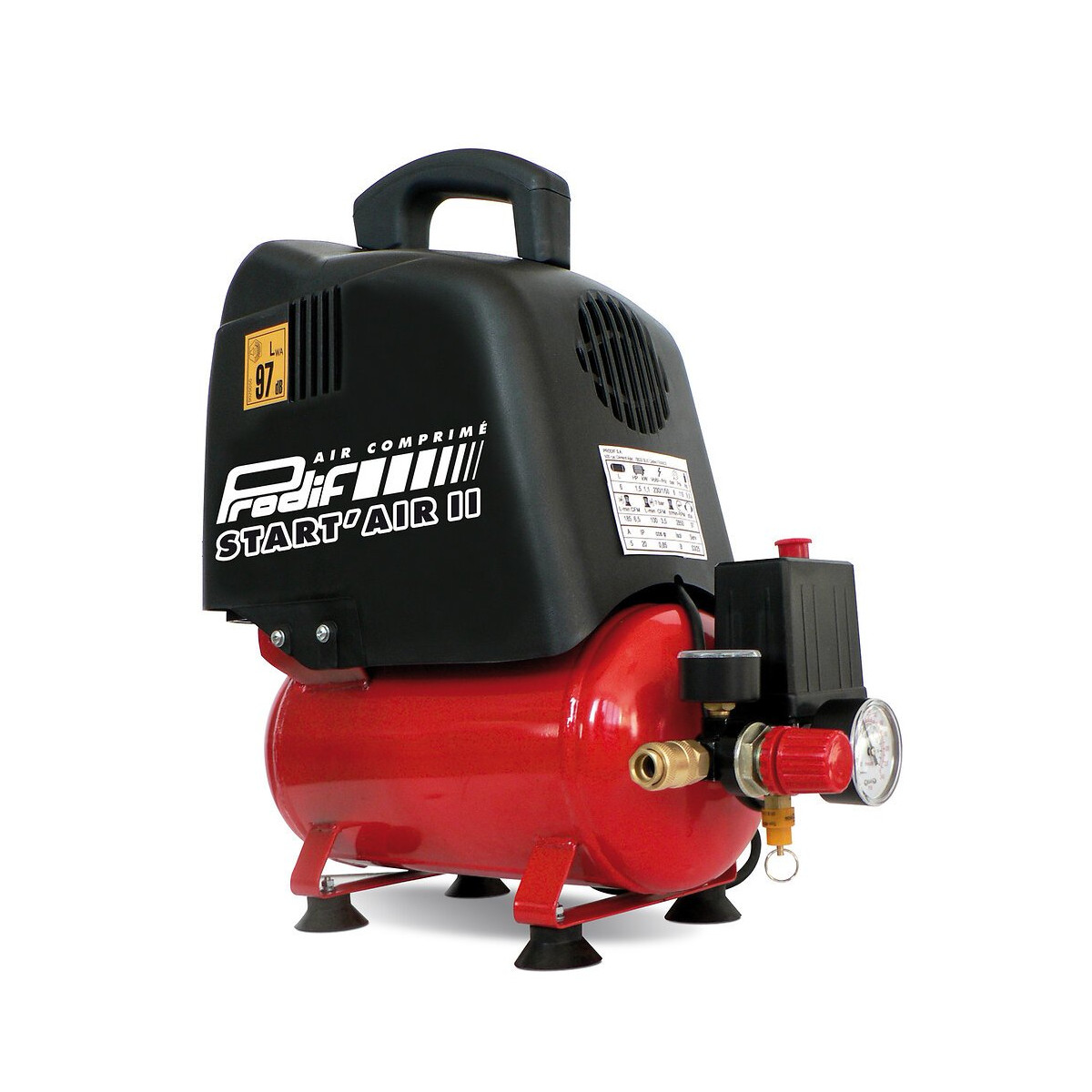 Compresseur portable PRODIF 6L 1.5 CV, sans huile, monophasé