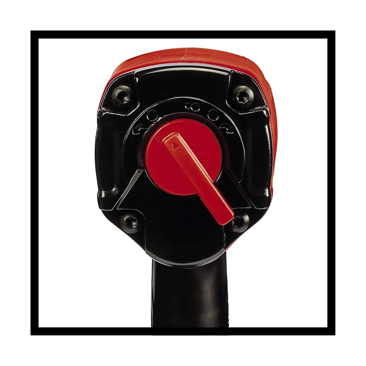 La clé à chocs pneumatique Einhell TC-PW 610 est puissante et robuste, travaillant avec un couple maximal de 610 Nm. Sa puissance élevée permet d'accomplir des travaux exigeants à la maison, à l'atelier et au garage. La poignée en caoutchouc antidérapante sécurise le travail. Proposant une rotation à gauche (1 position) et à droite (3 positions), la clé à chocs pneumatique peut exécuter différentes tâches. Un tuyau de minimum 9 mm de diamètre intérieur permettra d'obtenir les meilleurs résultats. Fournie avec 10 douilles (8/10/11/13/17/19/21/22/24/27 mm), un flacon d'huile, un raccord et une rallonge de 125 mm. L'outil est livré dans son coffret de transport et de rangement. Caractéristiques et bénéfices Clé à chocs puissante avec couple max. de 610 Nm Sa puissance élevée en fait l'outil idéal pour des travaux exigeants Poignée en caoutchouc antidérapante pour des travaux en toute sécurité Rotation à gauche (1 position) et à droite (3 positions) Performance optimale à partir d'un diamètre intérieur de tuyau de 9mm Avec 10 douilles (8/10/11/13/17/19/21/22/24/27 mm) Avec 1 flacon d'huile et 1 raccord Avec 1 rallonge de 125 mm Livrée dans son coffret de transport et de rangement Données techniques : Couple max 610 Nm Pression de fonctionnement maximum 6.3 bar Vitesse à vide 7000 min^-1 Consommation d'air 142 L/min
