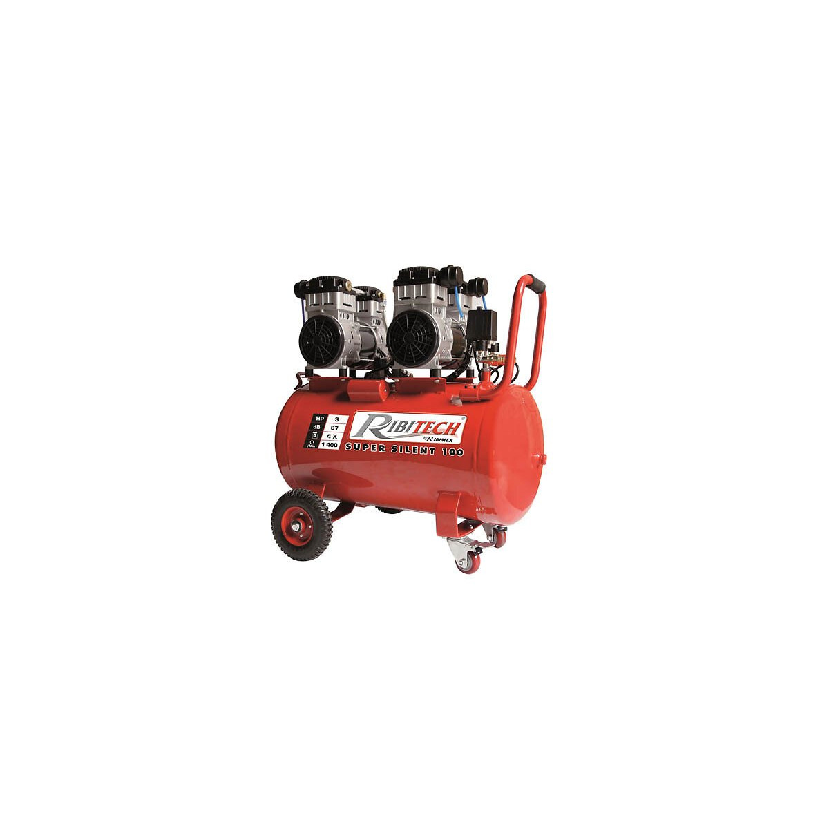 Compresseur 3 CV silencieux sur cuve de 100 litres, pour les applications courantes ainsi que pour peindre, pulvériser, buriner, et occasionnellement poncer, meuler. Compresseur électrique monté sur cuve sur 4 roues et poignée de transport, à entraînement direct. Caractéristiques: Modèle spécial silencieux à 67 dB. Bloc moteur-Compresseur 230 V ~ 50 Hz. Bi-cylindre. Auto lubrifié (sans huile). Pression de 8 bars max, avec manomètre. Air aspiré 370 L/min soit 22,2 m3/h Air restitué à 260 L/min, soit 15,6 m3/h.Spécifications techniques