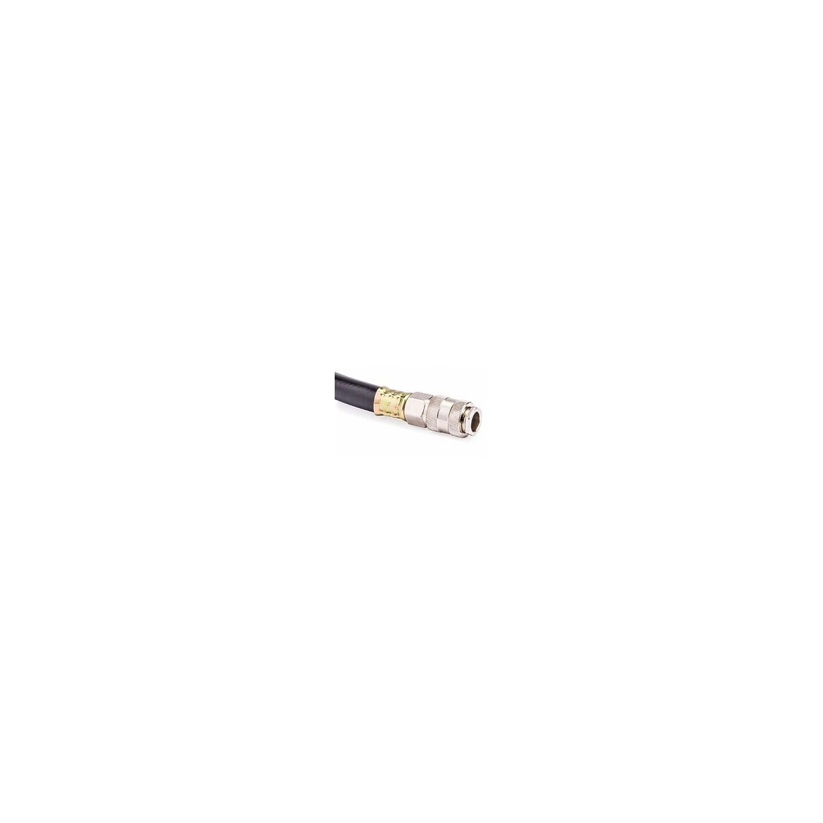 Tuyau d'air 10 x 17 mm / 20 m 20 bar RACCORD RAPIDE POUR LES OUTILLAGES PNEUMATIQUES SUIVANTS : Grignoteuse à tôle, compresseur d'air, pistolet peinture, riveteuse, boulonneuse clé, perceuse, polisseuse, ponceuse, etc. Du fait qu'il n'est pas spiralé il peut être rangé sur un enrouleur. Sa grande qualité est sa composition en caoutchouc haut de gamme flexible qui est résistant à l'huile et aux pressions élevées., CARACTÉRISTIQUES TECHNIQUES: Longueur : 20 m, Entrée d'air : 3 / 8 ', Diamètre intérieur : 10 mm, Diamètre extérieur : 17 mm, Pression : jusqu'à 300 psi (20 bar), Pression d'éclatement : 900 psi (62 bar), Raccordement : raccords rapides universels, Matière : caoutchoucSpécifications techniques