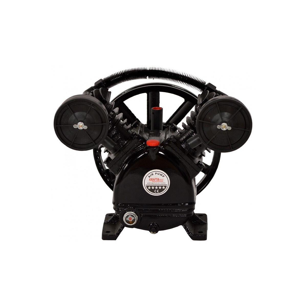 Tête de compression à deux pistons, lubrifié à l'huile, équipé d'une poulie qui refroidit le compresseur et le refroidisseur d'air latéral en même temps. Cylindres en fonte. ; CARACTÉRISTIQUES TECHNIQUES: Capacité de la pompe : 250 L/min; La pompe fonctionne avec un moteur d'une puissance minimale : 2.2KW; Diamètre du cylindre 65mm; Nombre de cylindres : 2; Pression maximale : 8 Bar; Poids : 16 kg