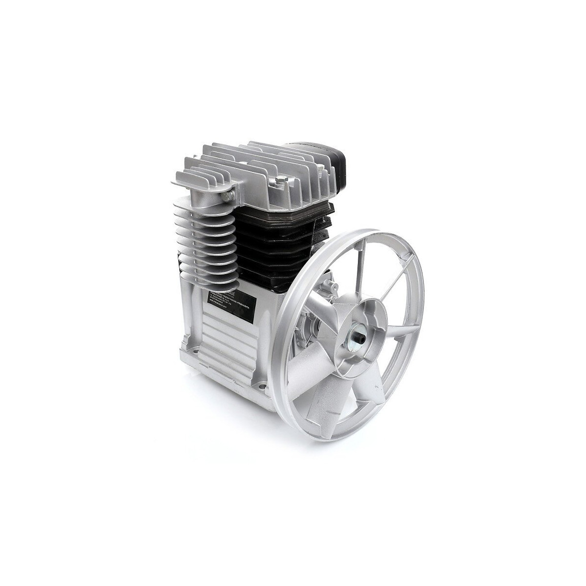 Tête de compression bi-cylindres en fonte avec avec volant et filtre d'aspiration ; CARACTERISTIQUES TECHNIQUES: Débit engendré: 300 L/min ; Vitesse de rotation : 1020 tours/minute ; Pour moteur: 1,5 kW / 2 CV ; Cylindre : 2 ; Diamètre de cylindre: 55mm ; Pression : 8 Bar ; Avec poulie 265 mm ; Dimensions: 150 x 182 mm ; Hauteur: 288 mm ; Poids: 11 kg