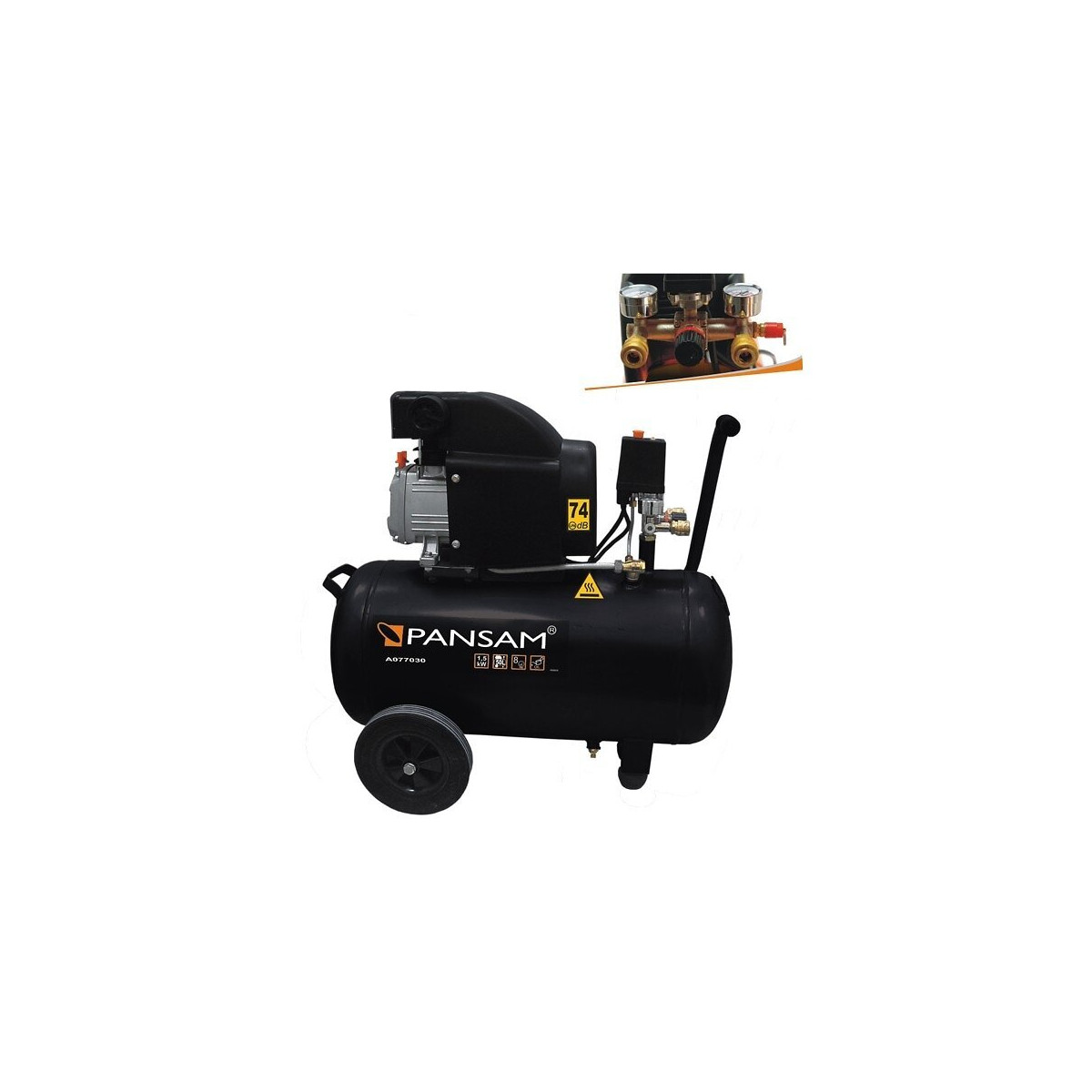 Compresseur à huile 50 L 8 bar idéal pour la compression d'air., CARACTÉRISTIQUES TECHNIQUES: Moteur électrique, monophasé et à induction., Puissance nominale : 1500 W, Alimentation : 230 V, Vitesse de rotation du moteur : 2850 tr/min, Nombre de cylindre : 1, Pression maximale : 8 bar, Lubrification à l'huile, Débit d'air maximum : 200 l/min, Pression de sortie réglable, Contenance de la cuve : 50 L, Deux manomètres, Évacuation de l'air à l'aide de deux raccords rapides., Poignée antidérapante, Deux roues pour une utilisation mobile, Pressostat, Pompe de vidange d'eau condensée, Poids : 35 kg, Egalement utile pour le nettoyage, le lavage