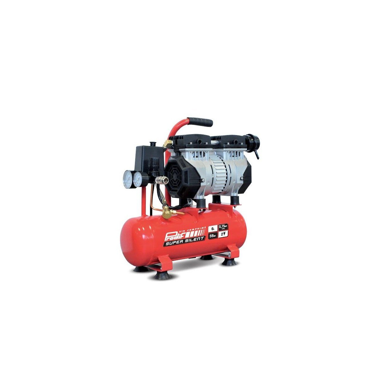 Silencieux, 0.75 CV Usage du produit: Gonflage, soufflage, agrafage, meulage léger, burinage léger Capacité de la cuve (en l): 6 Puissance du moteur (restituée) (en cv): 0.5 Nombre de cylindres: 1 Type de moteur: Monocylindre Pression maximum (en bar): 8 Débit d'air aspiré (en l/min): 100 Débit d'air restitué (en l/min): 61 Lubrification: Non (sans entretien) Entraînement: Coaxial Lubrification du groupe de compression: Sans huile Disposition des cylindres: En ligne Sur roulettes: Non Produit emballé : hauteur (en cm): 50 Produit emballé : largeur (en cm): 35 Produit emballé : profondeur (en cm): 35 Produit emballé : poids (en kg): 14 Indication du geste de tri (triman): Non