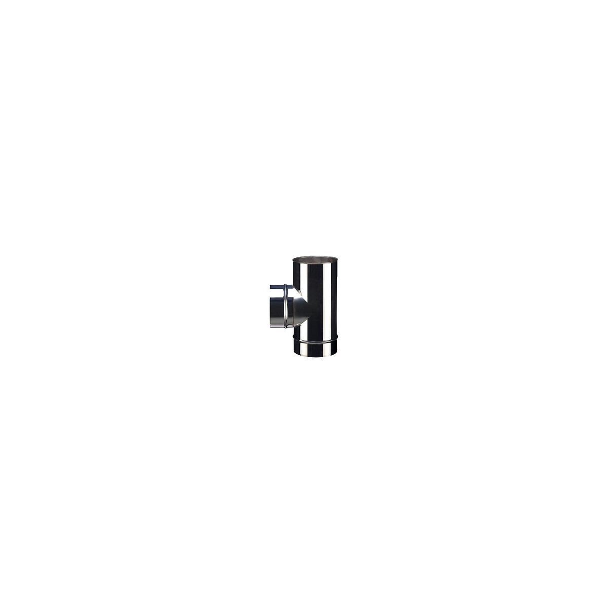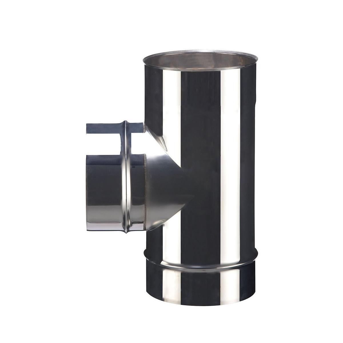 Té nu à 90° permettant le raccordement sur le conduit de cheminée. Conduit simple paroi sécurité de l'acier inox soudé en continu, épaisseur 4/10e. Les conduits de raccordement inox soudés en continu sont utilisés pour la réalisation de raccordement économique des chaudières fonctionnant au gaz, fioul ou bois. Dimension : Diamètre 150 mm.Spécifications techniques