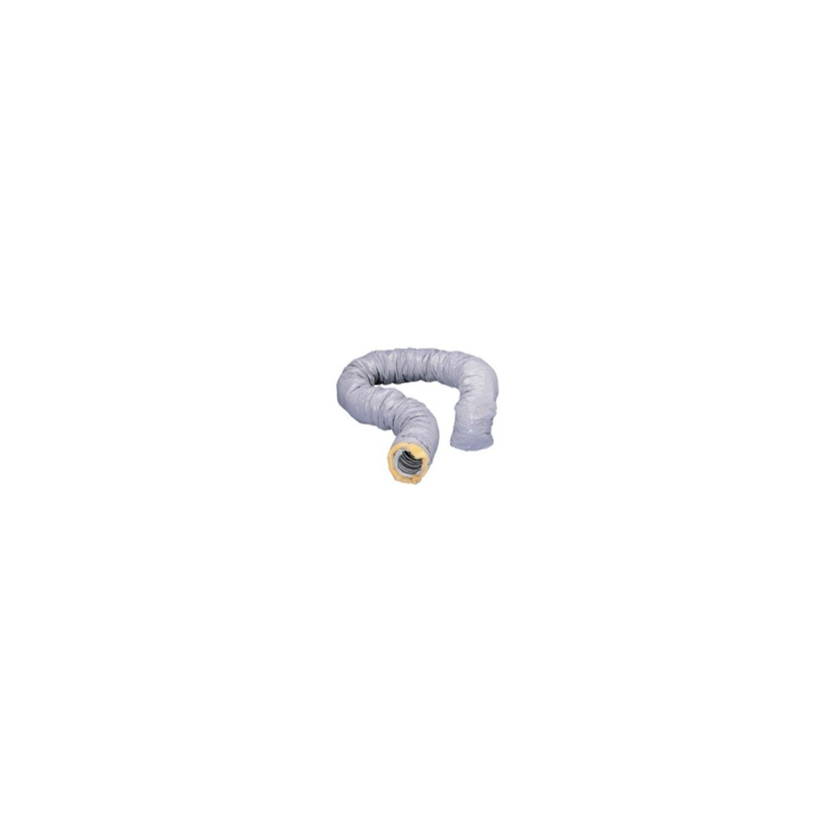 Paroi en PVC gris enveloppant une armature helicoïdale en fil d?acier, protégée par un matelas de laine de verre (25 ou 50 mm d?épaisseur) et recouvert d?un pare vapeur constitué d?un film polyétylène, tenue en température -10°C à +60°C. Cette gaine isolée est obligatoire dans une installation d'une VMC double flux pour conserver les calories récupérées. Cette gaine isolée est très fortement recommandée dans l'installation d'une VMC simple flux afin d'empêcher la formation de condensation à l'intérieur de la gaine, dûe à l'écart de température entre les combles et l'air à l'intérieur de la gaine.Spécifications techniques