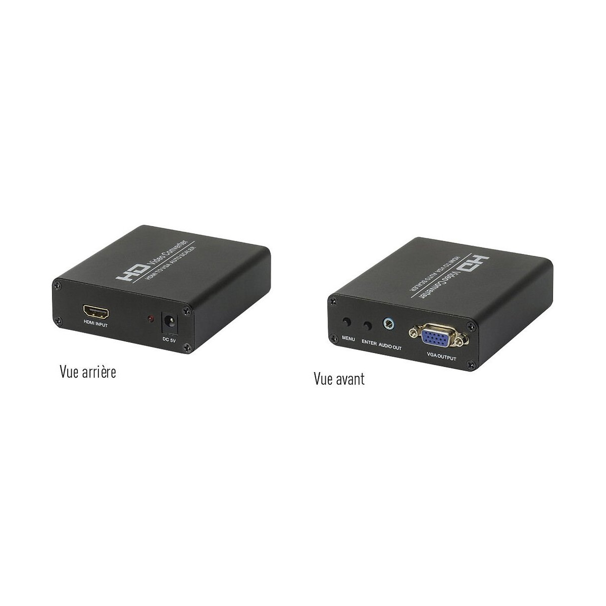 7951 - Convertisseur-Scaler HDMI / VGA 7951 ERARD. - Type de produit : Convertisseur-Scaler HDMI vers VGA. Type : Commutation vidéo. Couleur : Noir. Entrée(s) : HDMI. Sortie(s) : VGA, Jack 3.5 mm. Dimensions (mm) : 120 x 85 x 28.