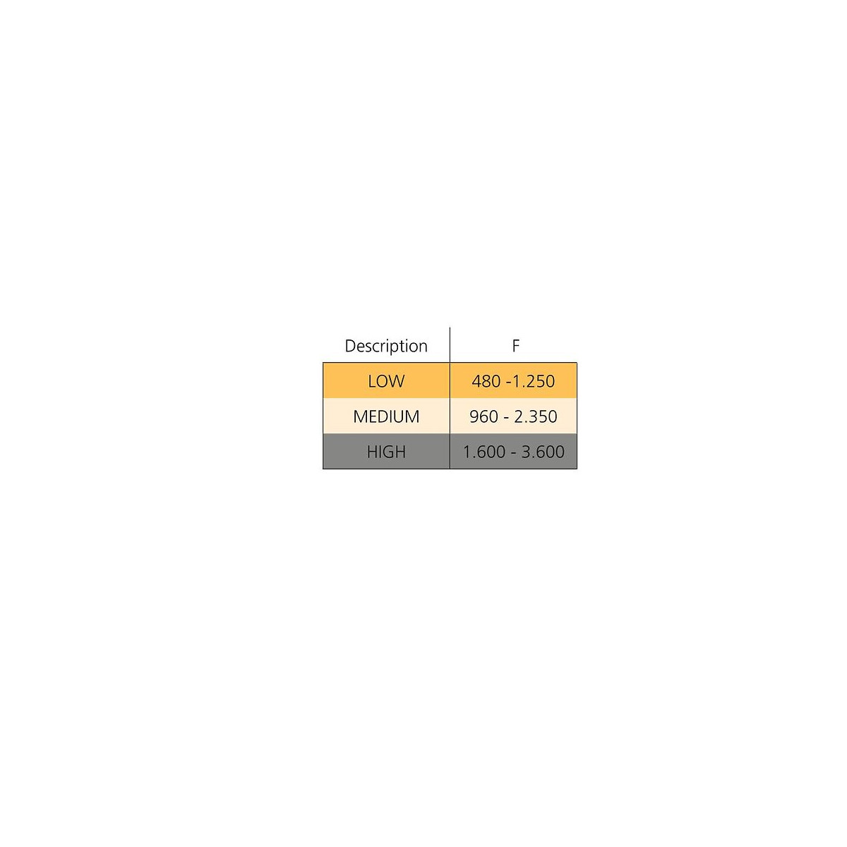 Système de compas pour portes relevables de meubles de cuisine et pour l´habitat. Ce système se distingue par son fonctionnement souple et précis, sans avoir besoin de charnières pour fonctionner. Il possède un angle d'ouverture de 107º qui profite au maximum de l'espace et facilite l'accessibilité au meuble. Il est conçu pour une largeur de caisson allant jusqu’à 1 200 mm et une hauteur totale comprise entre 250 et 600 mm, avec des épaisseurs de panneaux de 16 mm à 22 mm. Trois atouts différents sont proposés Les caches sont fournis et sont disponibles en finition gris anthracite et blanc. Il comprend également les crochets et les vis nécessaires à l’assemblage ainsi qu´un gabarit de marquage.CALCUL DE LA FORCE DU COMPASF = H x (poids de la porte + 2*poids de la poignée)F = Force.H = Hauteur de la porte en mm.Poids de la porte = Poids de la porte en kg.Poids de la poignée = Poids de la poignée en kg.