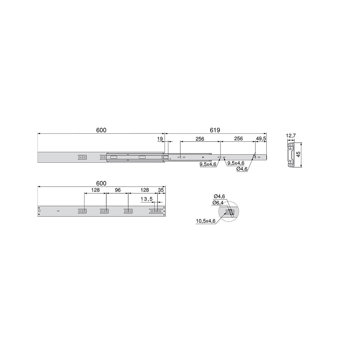 Coulisses à sortie totale pour tiroirs à fermeture amortie, dont les billes de haute qualité permettent un glissement doux et silencieux. Elles sont dôtées également d'une grande capacité de charge, pouvant supporter jusqu’à 35 kg par tiroir. Montage au moyen de vis et démontage avec la gâchette située sur la coulisse-même.