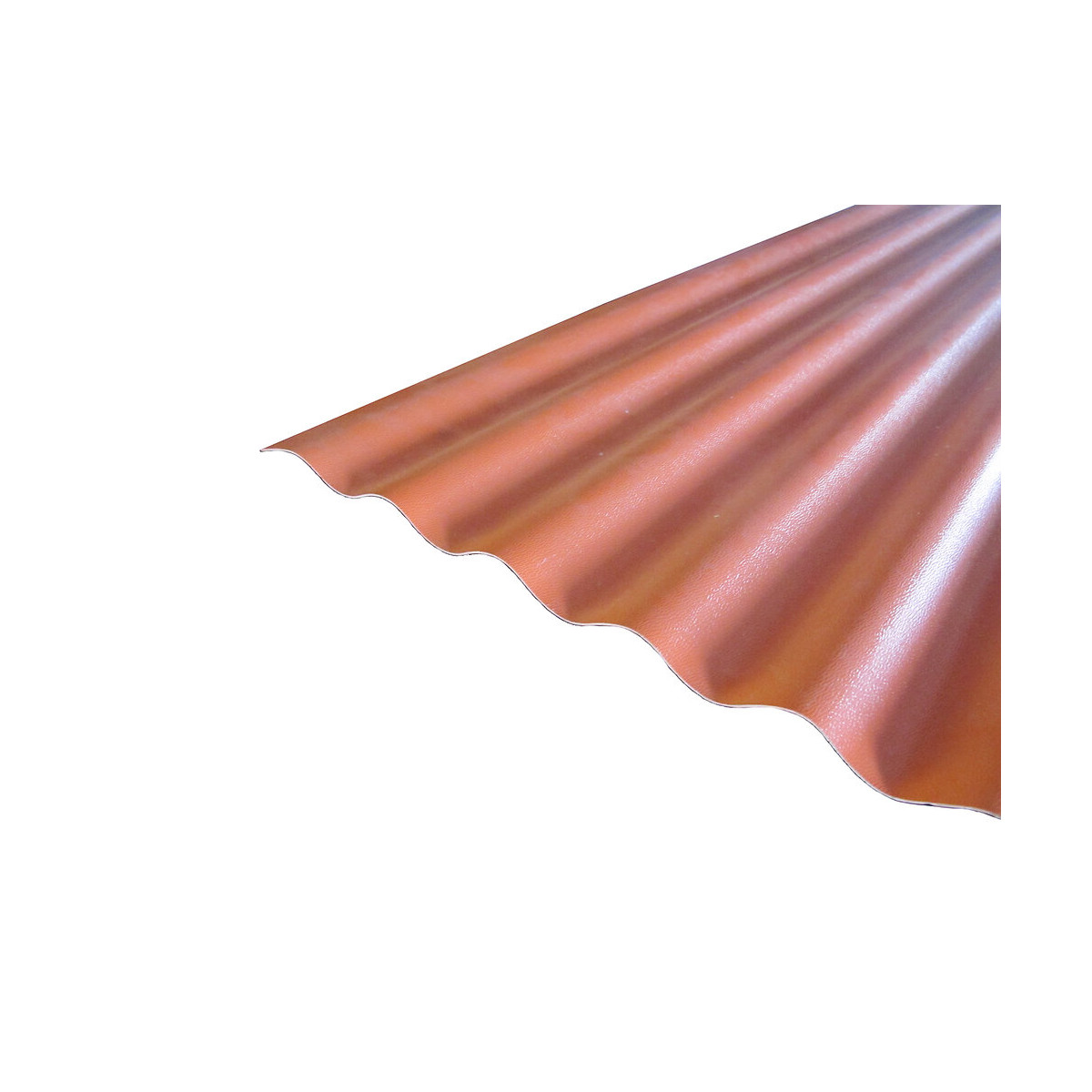 Plaque de couverture en PVC. Coloris terracotta. Dimensions : 300 x 90 cm - Modèle Ondes PO 76/18. Très résistant aux chocs. Traité anti UV. Insensible aux variations climatiques, à l'humidité et aux agressions naturelles. Parfait pour couvrir hangars, abris de jardin, auvents, couvertures secondaires. Pour la découpe utiliser une scie circulaire. Pré percer la plaque et prévoir des trous légèrement plus grands pour la dilatation linéaire.