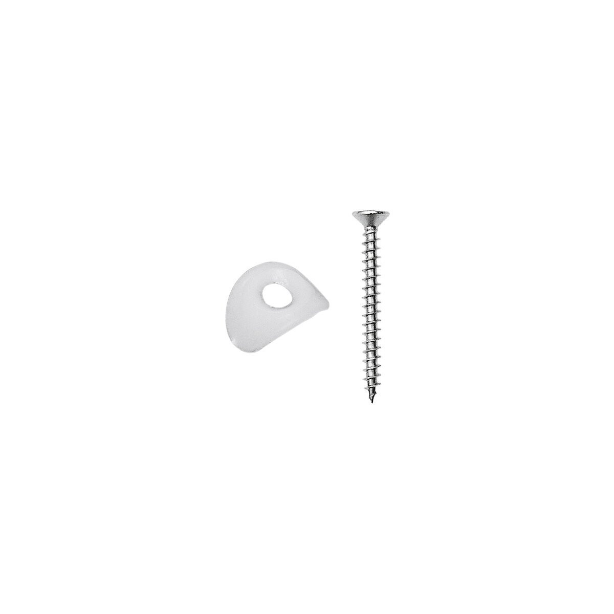 Fixations plaquettes en polyéthylène + Vis Universelle Bois en acier zingué. Vis à empreinte Prozidriv n°2. Plaque à onde sinusoïdale. Dimensions des vis : Diamètre 3,5 mm x Longueur 30 mm.Lot de 50 plaquettes et vis.