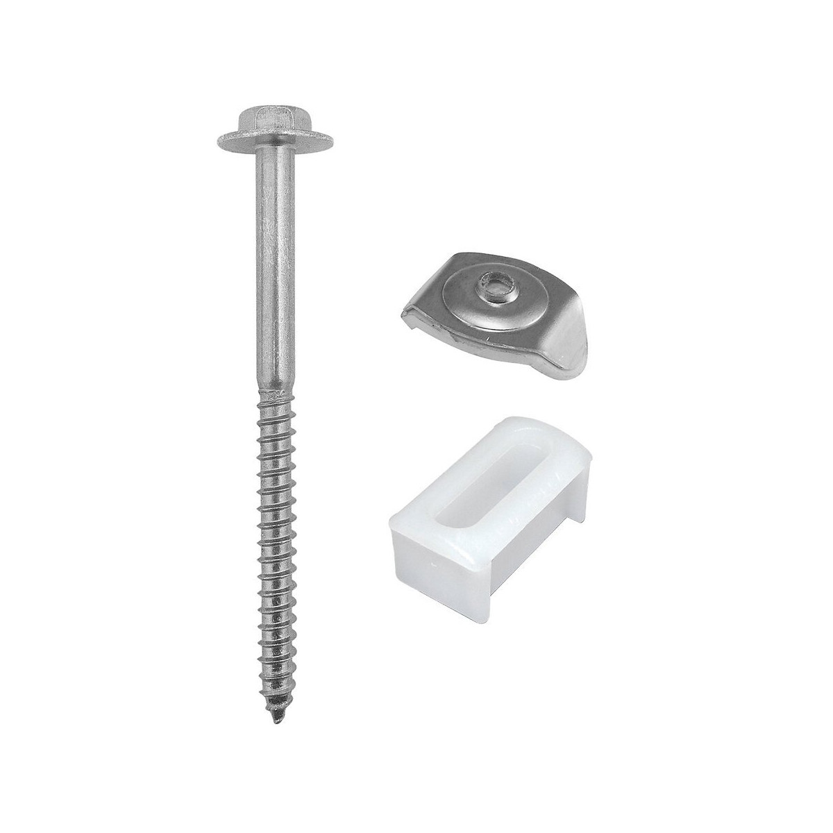 Ensemble tirefond + cale + cavalier pour plaque greca PVC.