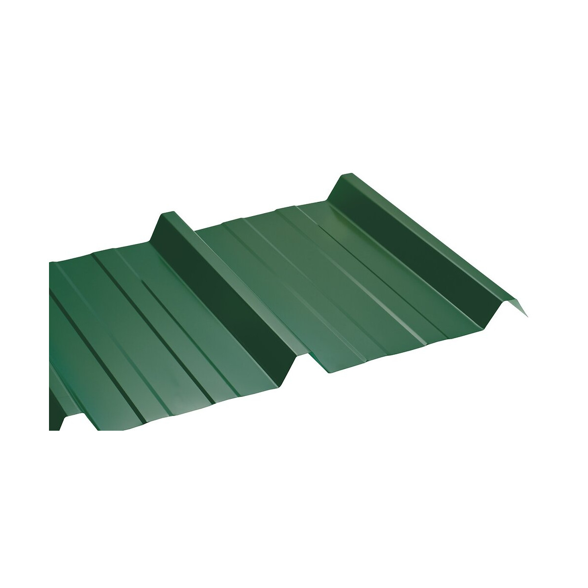 Tôle laquée nervurée régulée 1000.45. Epaisseur 0.63mm. Dimensions : 200 x 105cm. Coloris : vert ral 6009.