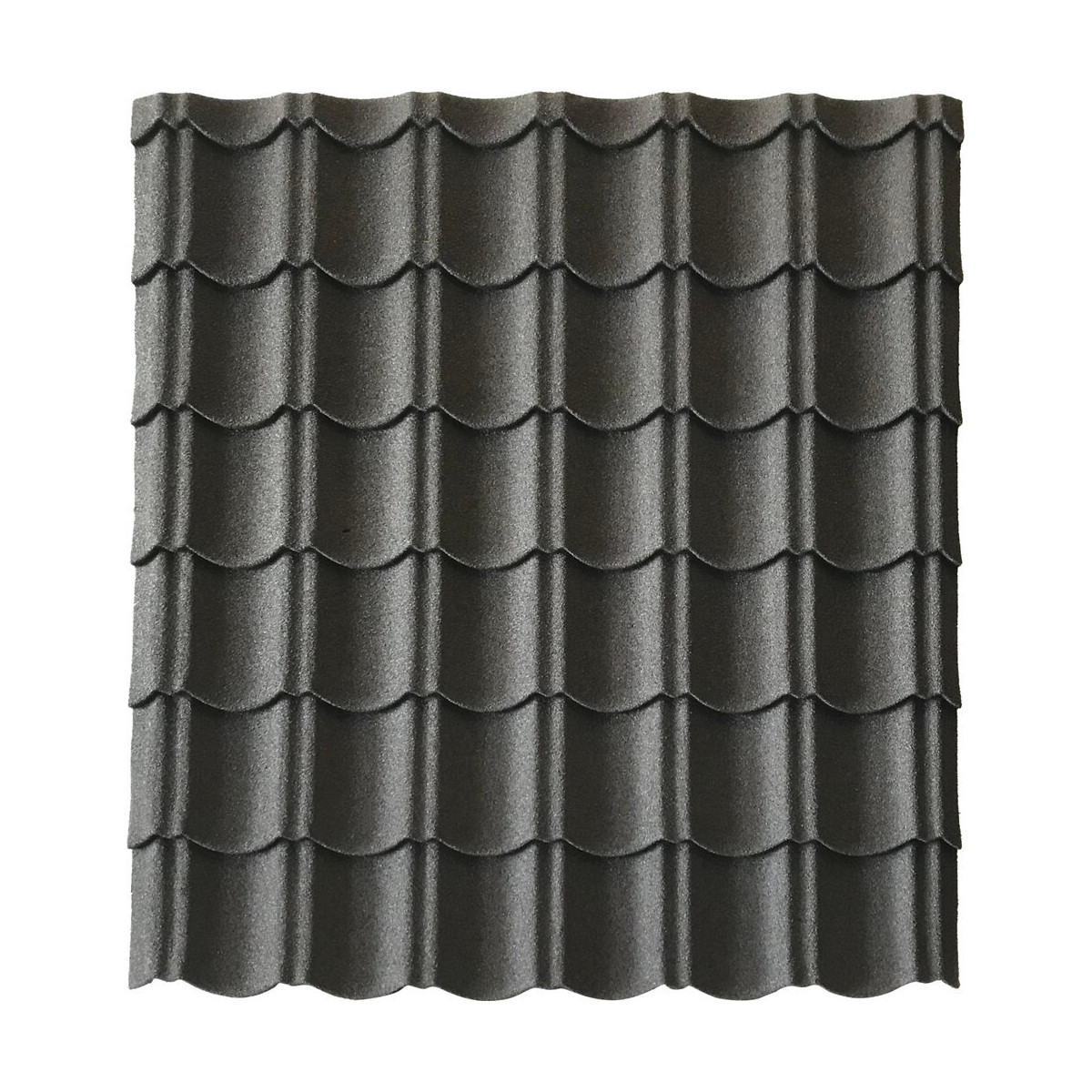 Panneau tuile en acier galvanisé surface granulat minéral. Coloris anthracite. Dimensions 1030 x 950 mm. Léger, économique, durable, finition esthétique, sans découpe, mise en oeuvre très simple. Idéal pour vos couvertures d'abris de jardin, carports, niches et chalet de jardin avec pente > 10%.