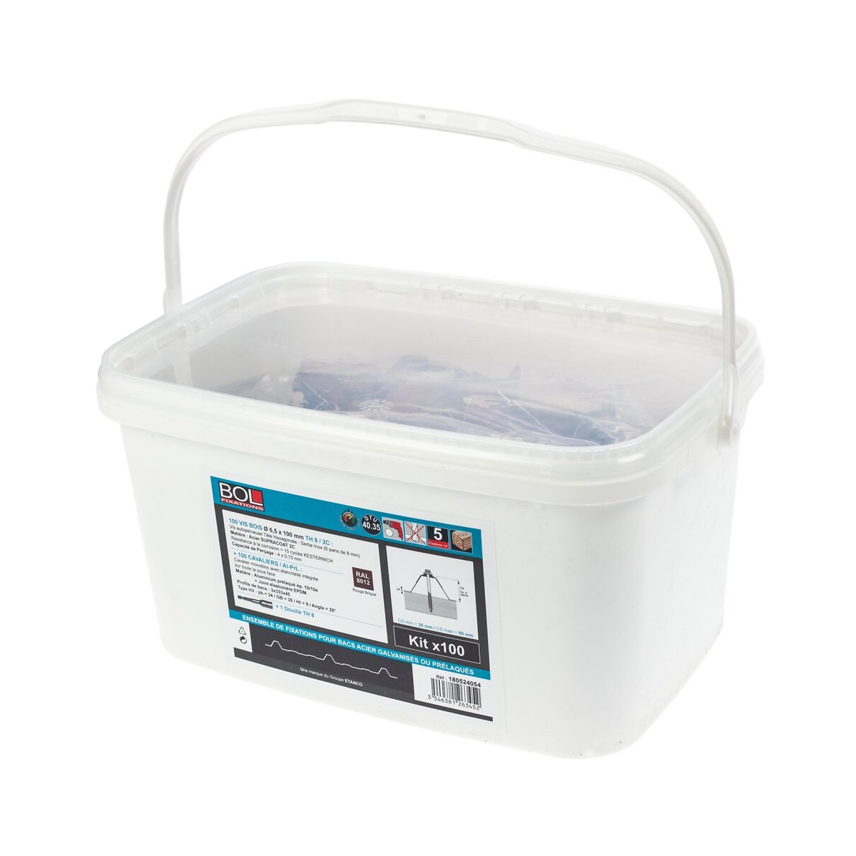 100 vis + cavaliers pour fixations de bac RAL 8012