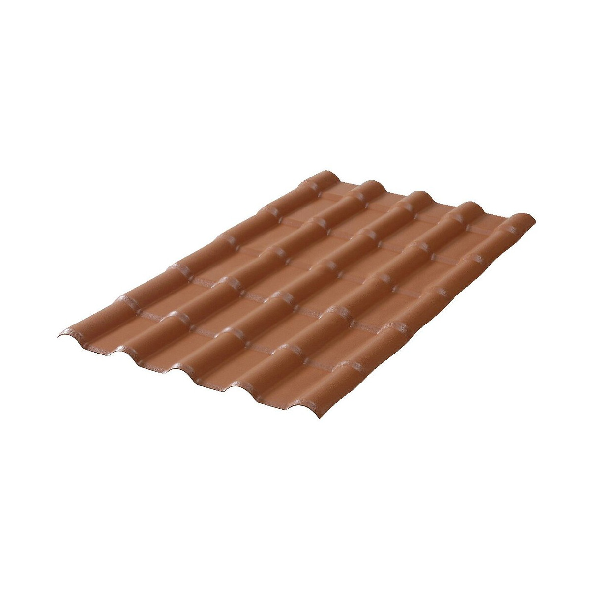Plaque de couverture en PVC imitation tuile. Coloris Terracotta. Dimensions : 222 x 75 cm - Modèle Express. Très résistant aux chocs. Traité anti UV. Insensible aux variations climatiques, à l'humidité et aux agressions naturelles. Pose facile avec kit de fixation composé de 50 plaquettes, 50 vis, 50 rondelles d'étanchéité et 50 capuchons. Parfait pour couvrir hangars, abris de jardin, auvents, couvertures secondaires. Pour la découpe utiliser une scie circulaire. Pré percer la plaque et prévoir des trous légèrement plus grands pour la dilatation linéaire.