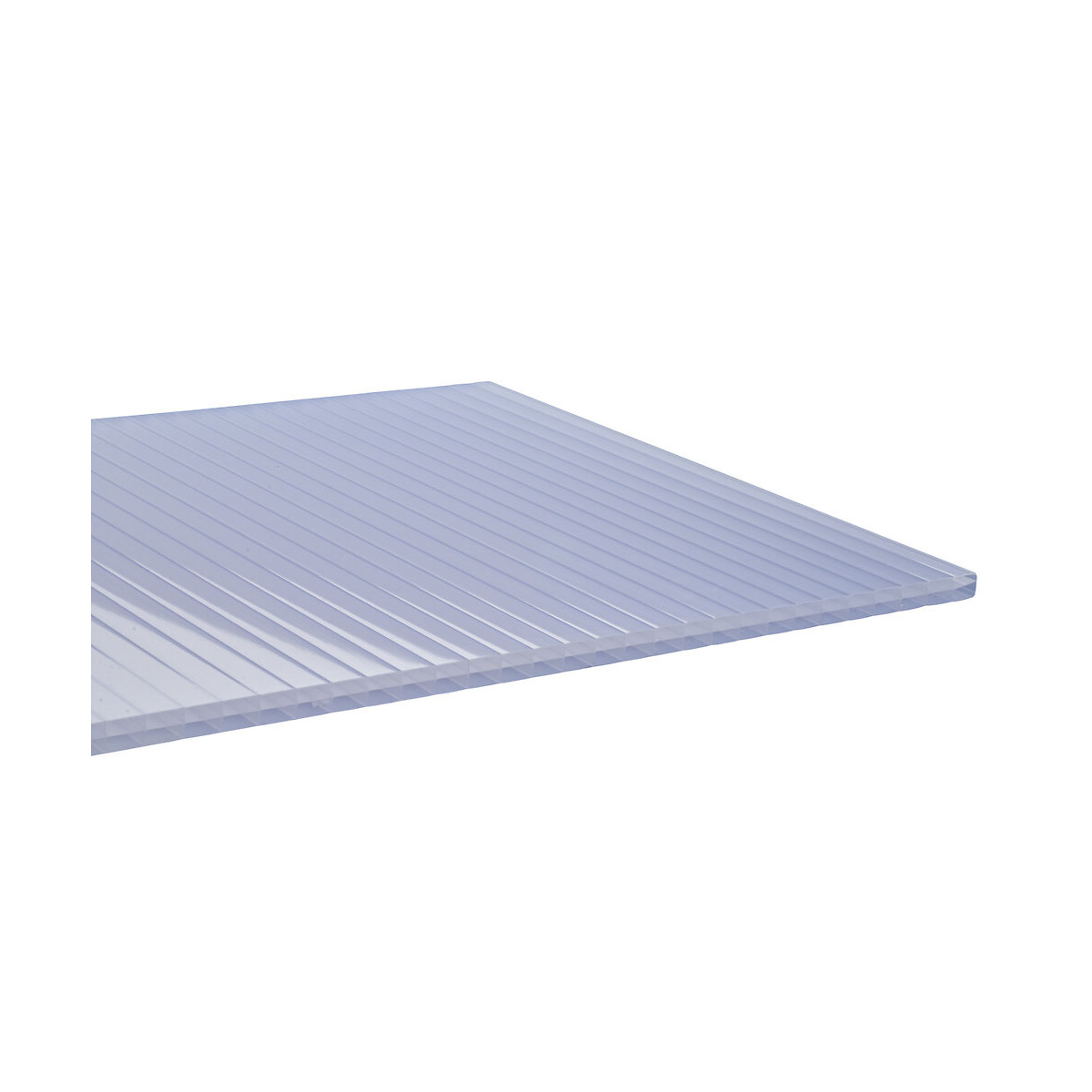 Plaque polycarbonate alvéolaire. Isolant, translucide et léger, facile d'utilisation, tenue au vent. Pour toitures de vérandas, patios, serres, passages couverts, piscines.