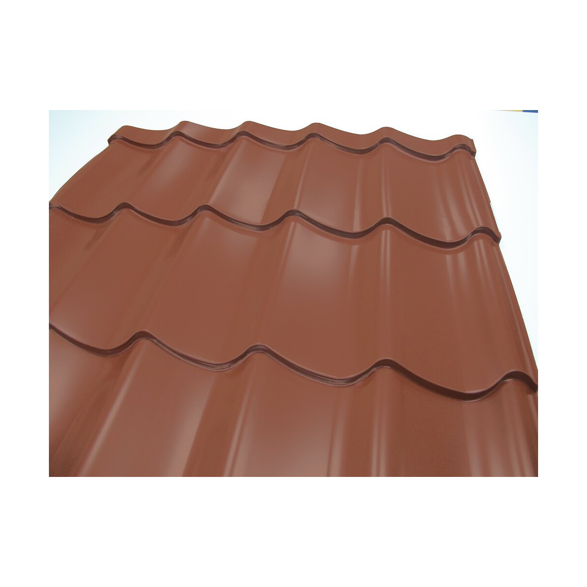 Panneau tuile en acier galvanisé laqué. Coloris brun rouge. Dimensions 1950 x 1040 mm. Inaltérable, économique et esthétique. Idéal pour la construction ou la rénovation de toiture de hangars, abris industriels ou agricoles, garages, pour la couverture de auvents, préaux.