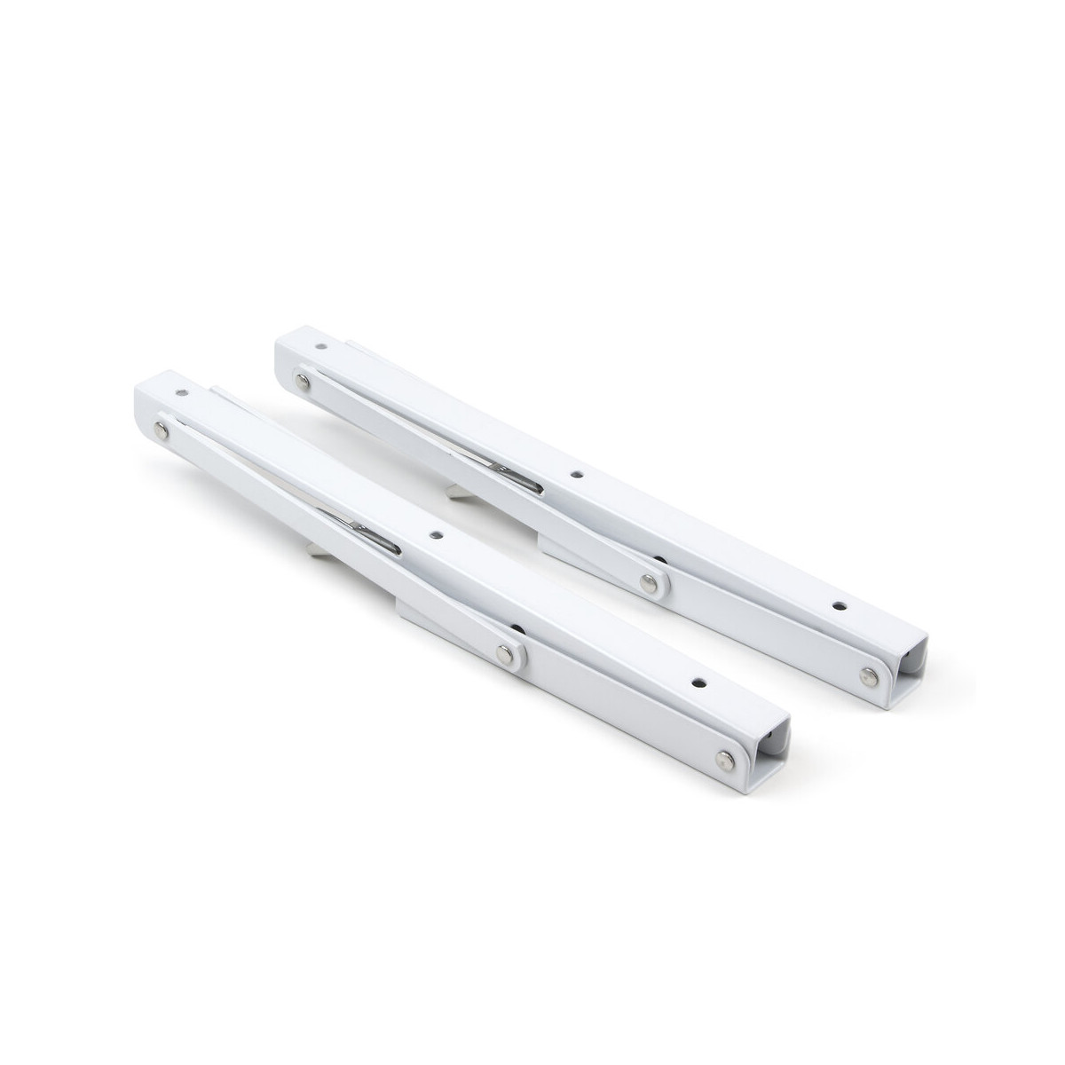 Jeu de 4 supports pliants pour étagères sur le mur. Disponible en tailles de 200 mm/300 mm/400 mm avec une capacité de charge maximale de 40, 50 ou 60 kg pour chaque étagère avec deux supports.Faciles à installer, ces supports pliants vous permettent de monter des étagères pliantes afin de tirer le meilleur parti de l'espace. Il dispose de boutons qui permettent de les plier et d'activer le mécanisme de blocage qui empêche les supports de se plier accidentellement.Fabriqué en acier avec une finition peinte en blanc. La fourniture comprend 4 supports pliants, 12 vis et 12 chevilles d'installation murale, ainsi que 12 vis à bois pour l'installation sur les étagères que vous décidez d'utiliser.