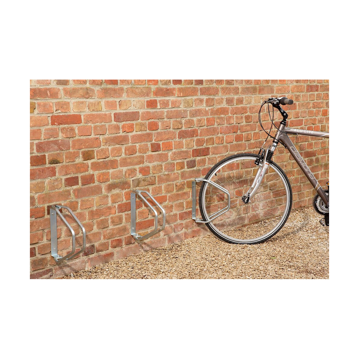 Range vélo mural en acier pour 1 vélo pivotant à 180°. Dimensions : H.33 x l.8 x P.29 cm.