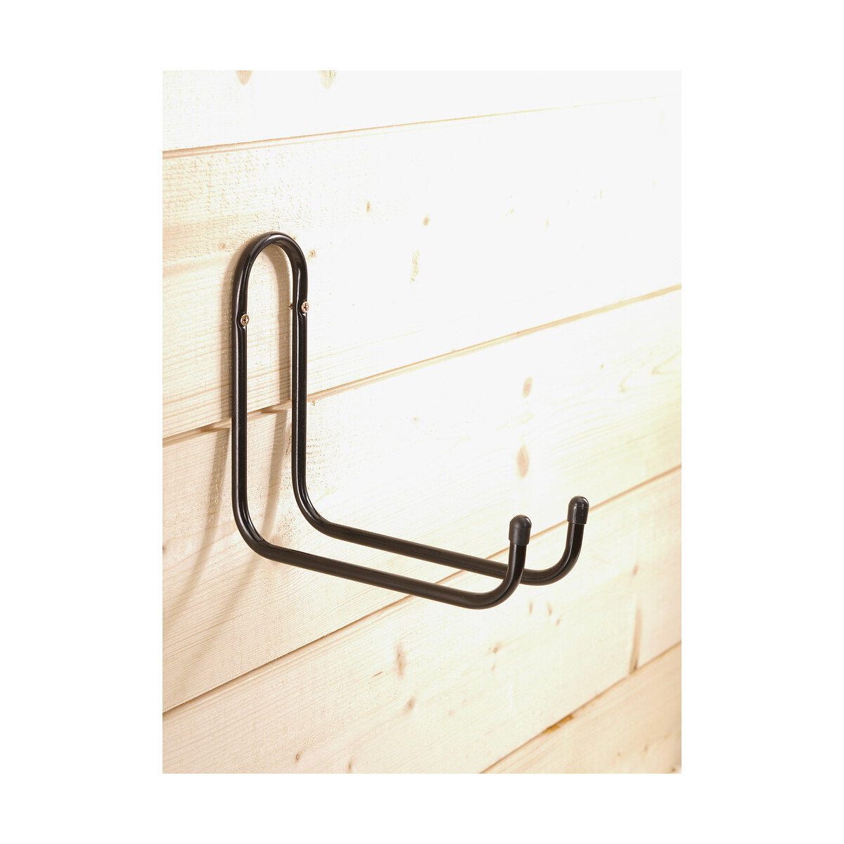 Crochet double multi-usages en acier. Peinture époxy noire. Charge maximale : 60 kg. Dimensions : L.220 x d.10 mm.
