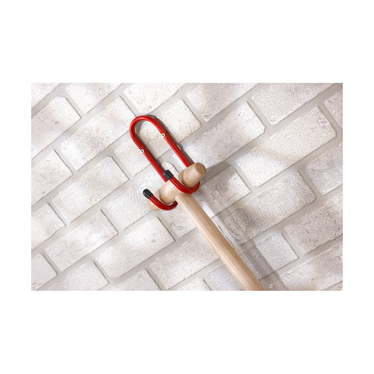 Crochet double multi-usages en acier. Peinture époxy rouge. Idéal pour accrocher : outils de jardin, ustensiles de ménage, raquettes de tennis. Charge maximale : 80 kg. Dimensions : L.74 x d.10 mm.