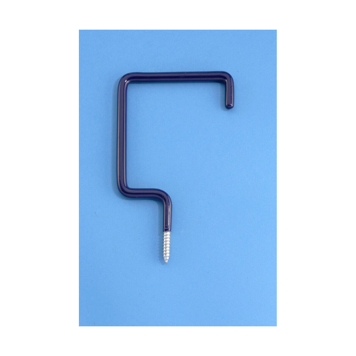 Crochet à vis grand modèle carré. Multi-usages. Pour fixation au mur ou au plafond. Revêtement en "RILSAN". Charge maximale : 80 kg. Dimensions : L.150 x d.9 mm.