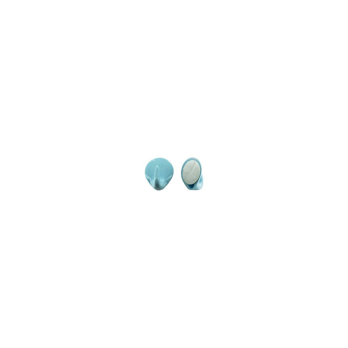 Crochet adhésif plastique bleu 39x33mm - 1 pièce