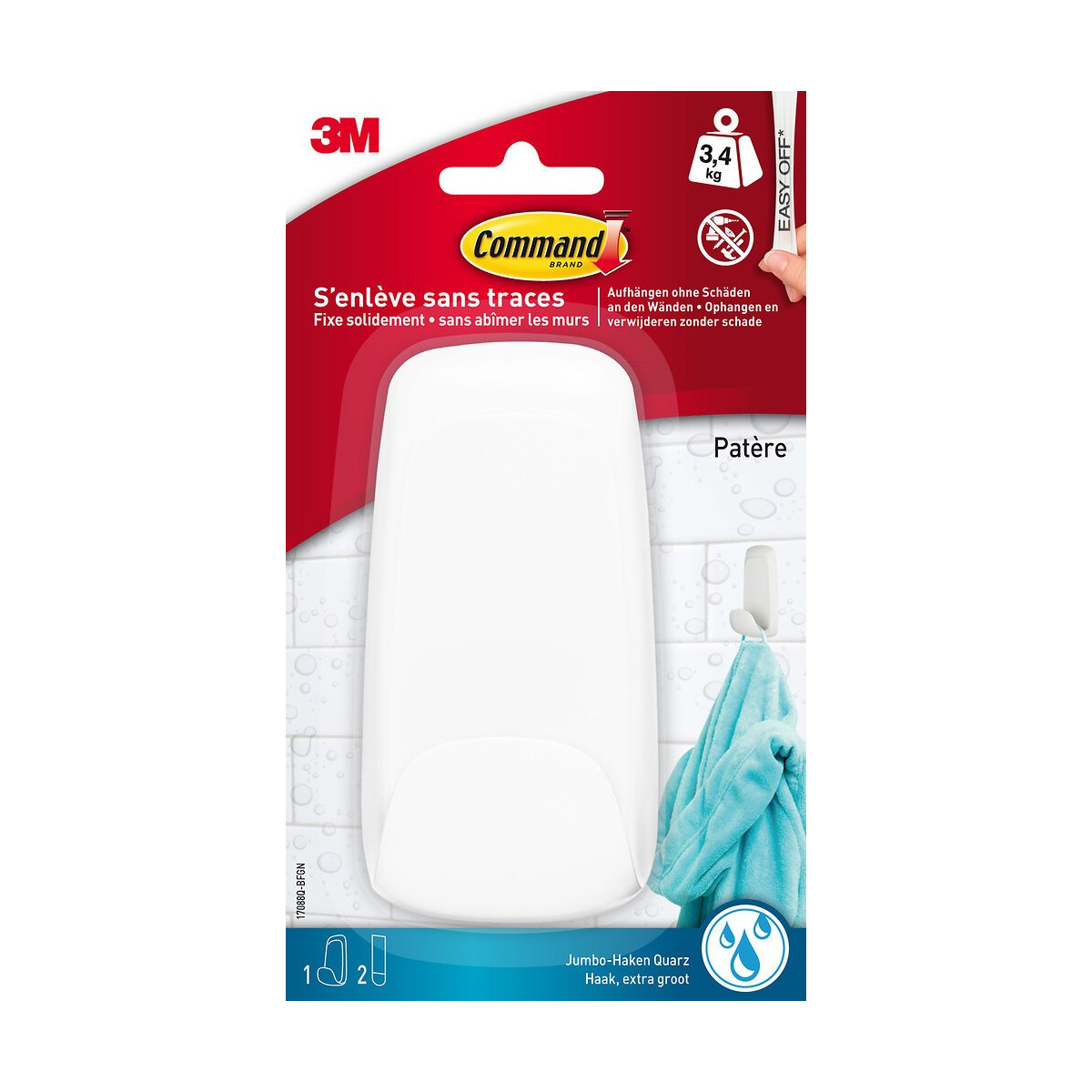 Patère plastique Command™ blanc nacré grand modèle avec 2 languettes de fixation adhésives enlevables résistant à l'eau - Charge maximale supportée : 3,4kg - Les crochets résistants à l'eau Command™ proposent différentes collections de design pour correspondre au mieux à votre style et votre décoration. Ils sont parfaitement adaptés aux environnements humides (salle de bains, cuisine, ...). Fini les clous, les vis et les punaises, les crochets Command™ s'accrochent facilement et solidement sur différents supports (surfaces, carrelées, peintes, en bois, et plus encore ...). De plus, ils s'enlèvent proprement en ne laissant ni trou, ni marque, ni résidu collant. Si vous souhaitez déplacer les crochets, il suffit d'appliquer une nouvelle languette adhésive résistante à l'eau Command™ qui vous permettra de les fixer et les réutiliser à volonté !Spécifications techniques