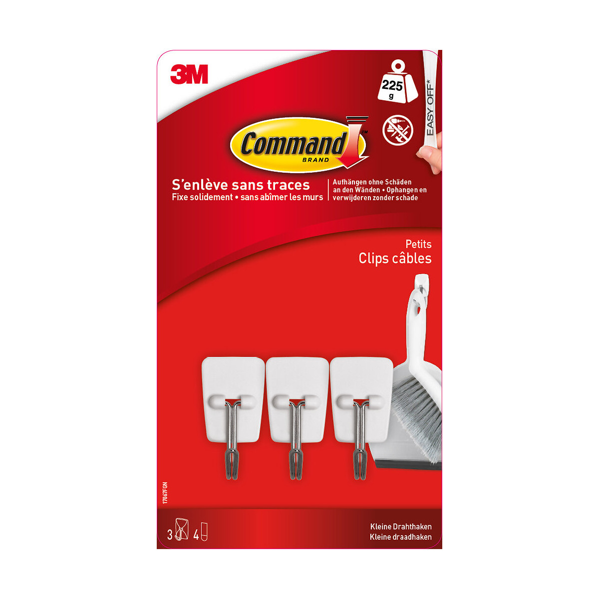 3 crochet plastique pointe métal Command™ blanc petit modèle avec 4 languettes de fixation adhésives enlevables - Charge maximale supportée : 225g - Fini les clous, les vis et les punaises, les crochets Command™ s'accrochent solidement et facilement sur différents supports (surfaces peintes, en bois, carrelées, et plus encore ...). De plus, elles s'enlèvent proprement en ne laissant ni trou, ni marque, ni résidu collant. Si vous souhaitez déplacer les crochets, il suffit d'appliquer une nouvelle languette adhésive Command™ qui vous permettra de les fixer et les réutiliser à volonté !Spécifications techniques
