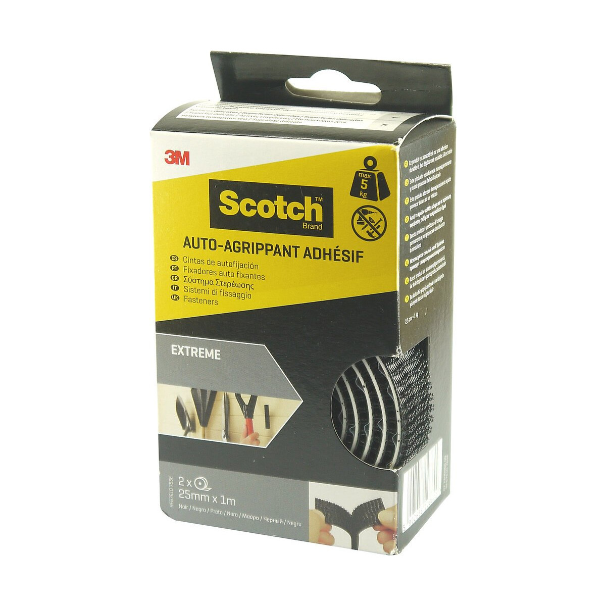Rouleau Agrippant Adhésif extrême noir 1m x 25mm - Les auto-agrippant adhésifs de la gamme Scotch se déclinent en plusieurs formes et dimensions pour permettre une facilité au quotidien. Chaque produits sont pensés pour une utilisation précise. Du rouleau agrippant à la pastille, vous avez la possibilité de choisir le produit qui correspond à vos besoins. Simple d’utilisation, les clous, vis et autres matériaux ne sont pas nécessaire à la fixation. Les auto-agrippant de la gamme Scotch se fixent solidement et facilement sur différente surface (lisse, peinte, métal, béton). La famille Extrême des auto-agrippant est idéale pour accrocher des éléments jusqu’à 5kg.Spécifications techniques